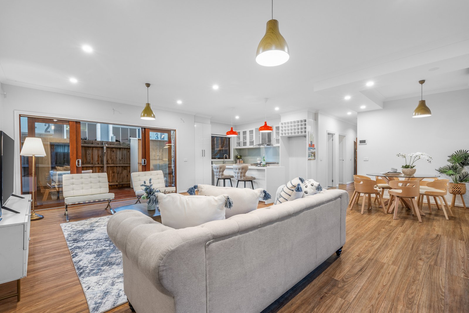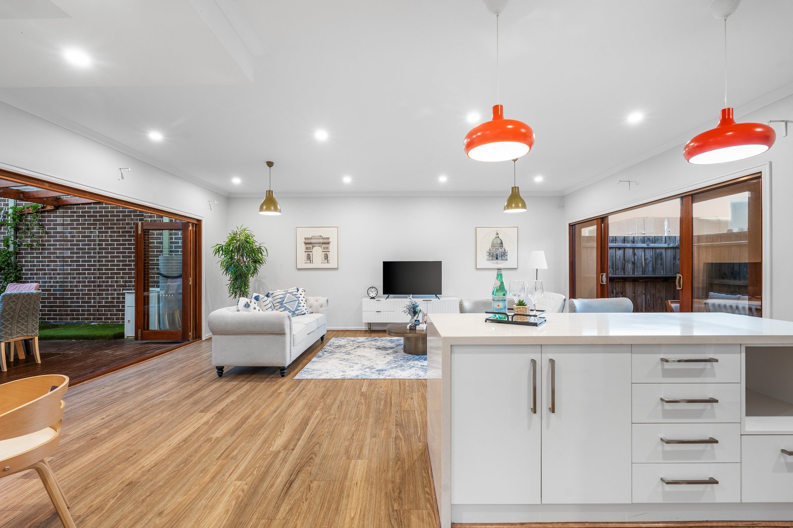 A light-filled open-plan layout highlights a designer stone kitchen with premium appliances, flowing seamlessly to two beautifully landscaped decks that invite effortless indoor-outdoor entertaining....