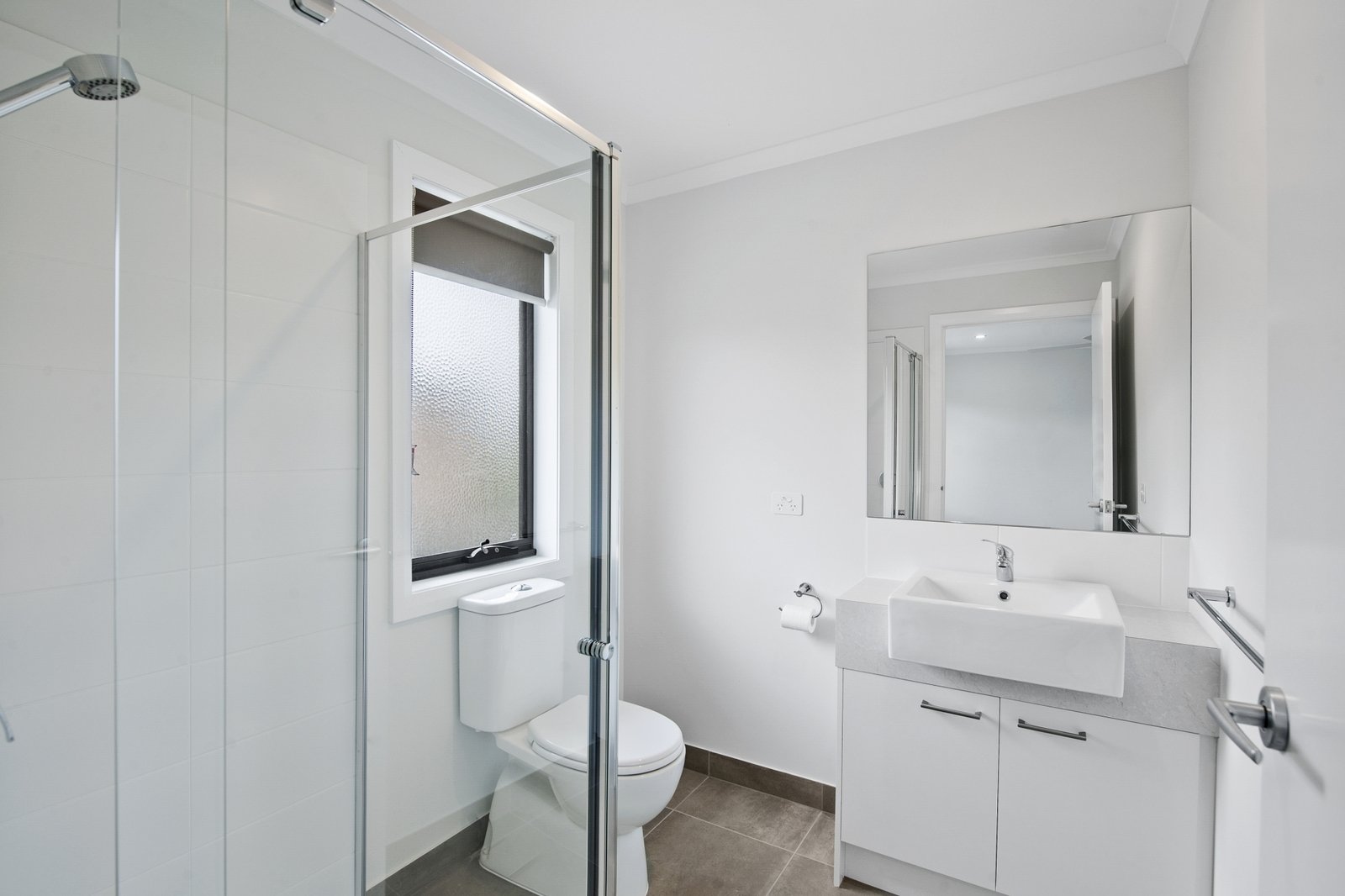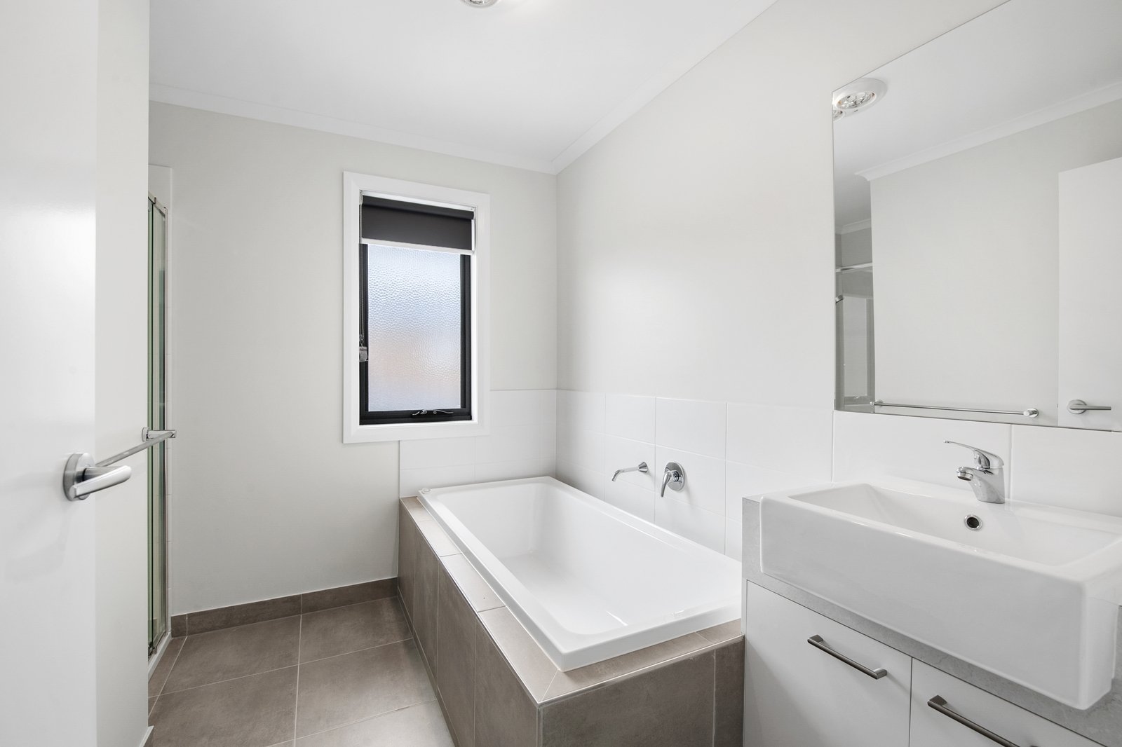 - Main bathroom with separate shower, bath and vanity
