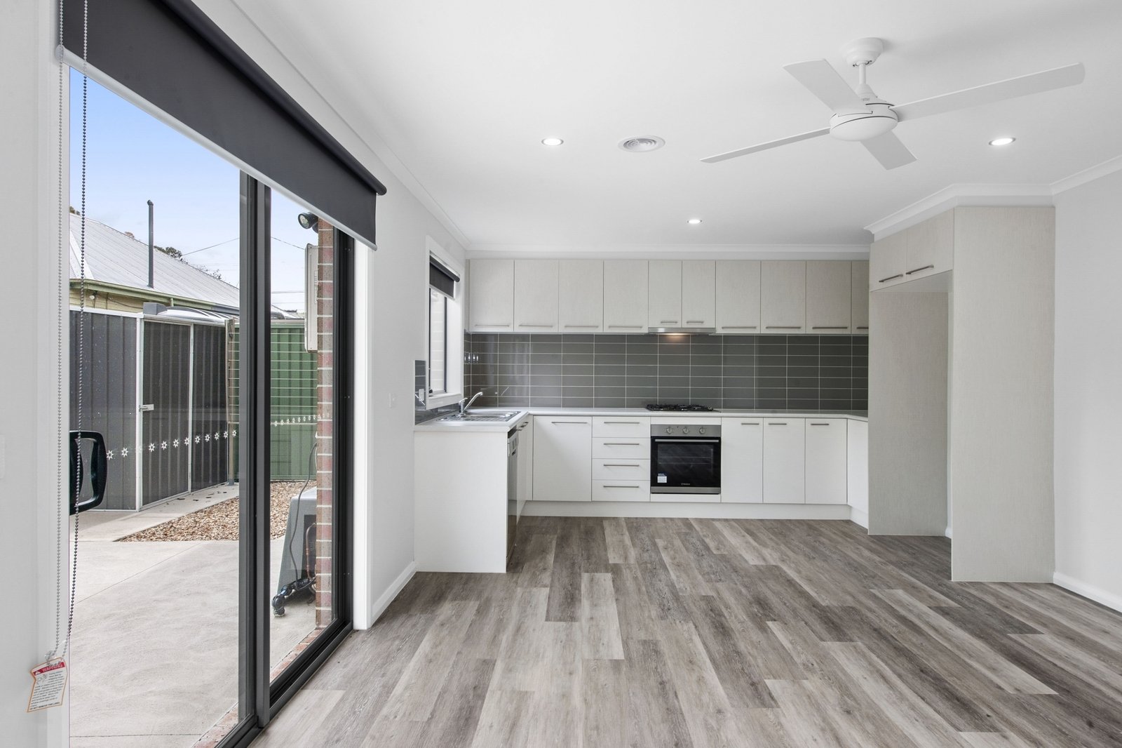 - Open plan Kitchen/Dining/Living with ceiling fans