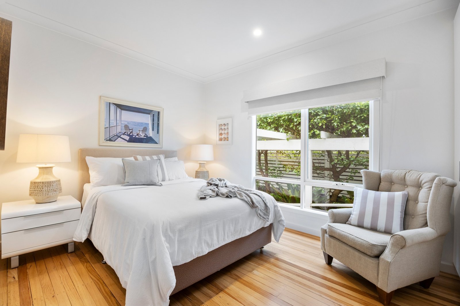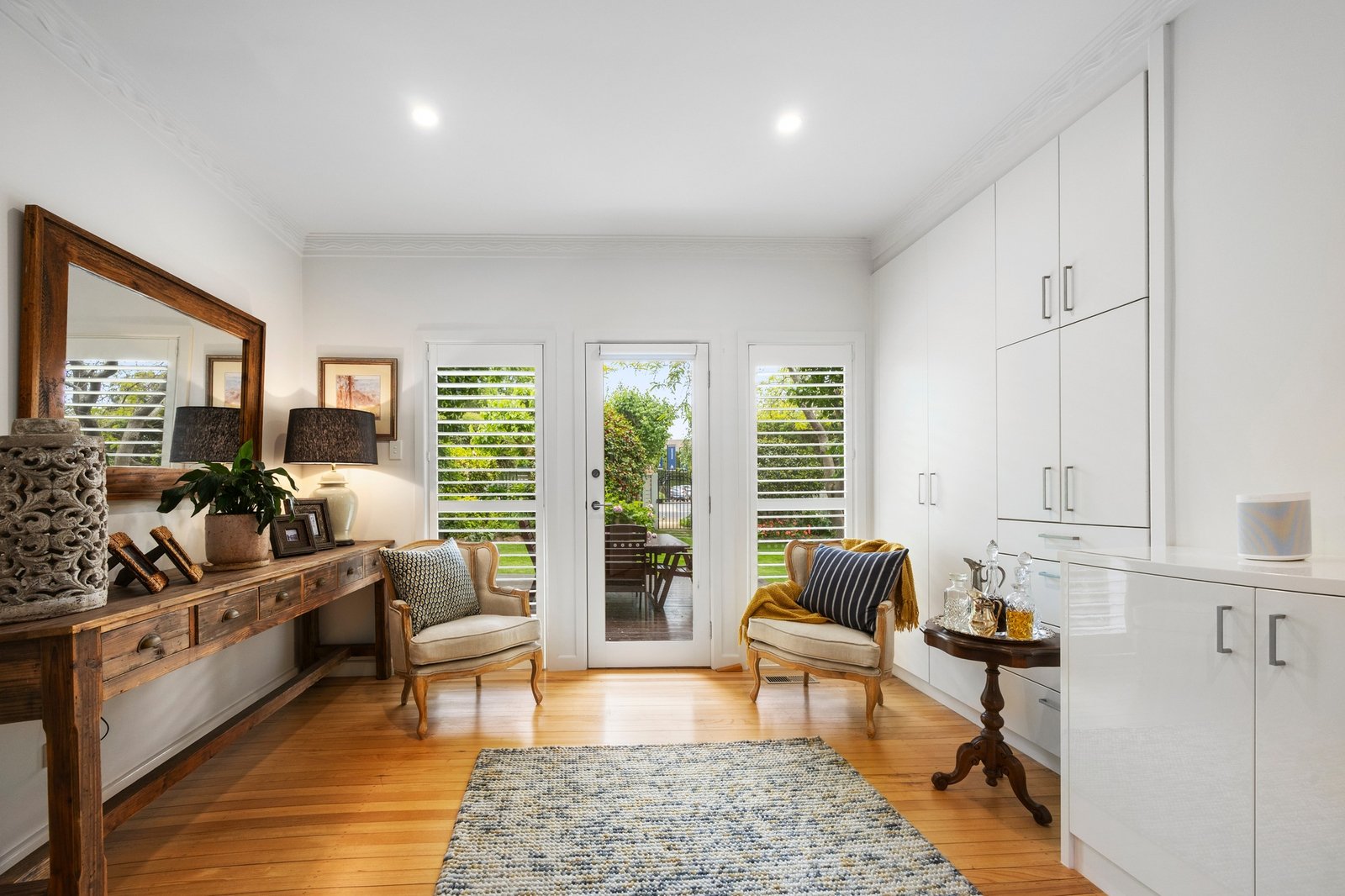 Evoking a grand presence along the Golden Mile, this residence embodies elegant sophistication and coastal luxury. Bathed in natural light through expansive banks of windows and doors, the home’s interiors are enhanced by high ceilings adorned with ornate cornicing. Cleverly designed to blur the boundaries between indoors and out, the layout celebrates magnificent garden terraces that wrap the home in greenery and light. A weatherboard masterpiece with a gabled roof boasting Tasmanian Oak floorboards, it combines timeless design and modern comfort — all within walking distance of Mt Eliza Village.