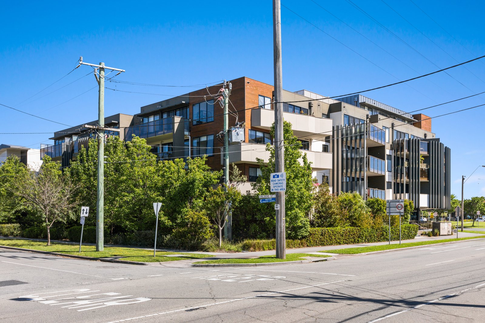 The sleek Blanco-appointed kitchen and two luxurious bathrooms (including a private ensuite) are complemented by stone benchtops, mirror splashbacks, wideboard oak floors and plush carpeting. Comfort is assured year-round with split system H/C and ceiling fans, while security and convenience come via video intercom entry, lift access and a basement car space with storage.