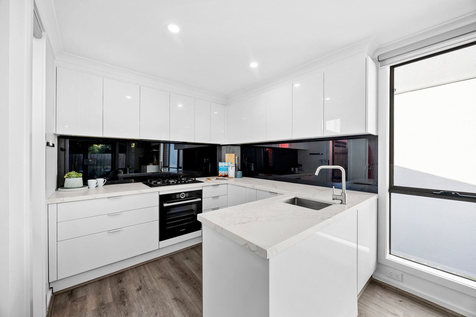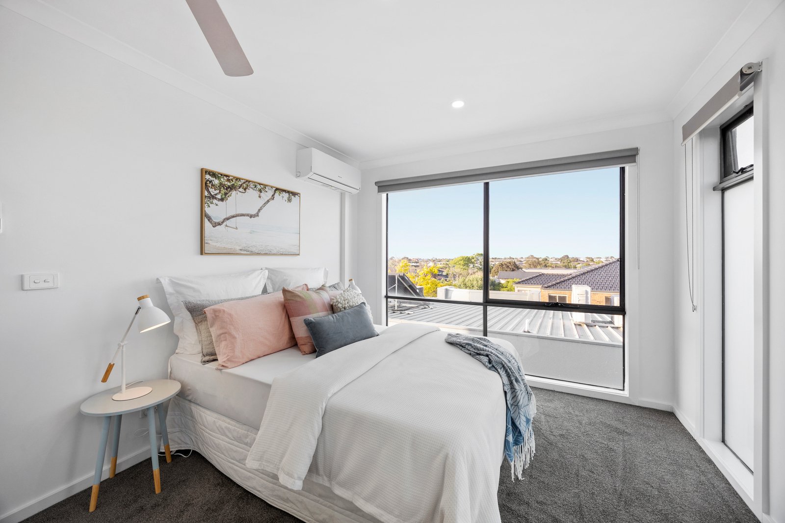 Newly carpeted with a fresh white paint scheme, this high-quality home rises above the rest with a prestige Bosch appliance kitchen set beyond a deep dining-bench, designer bathrooms with feature vertical-subway tiling, cool stone benchtops and hardwearing wideboard floors. Appointed with individual reverse-cycle climate-control to every room and tall mirrored-robes for each bedroom, there’s additional fan-cooling, a well-positioned laundry area, customised understair storage, two secure car parks, and a storage cage.