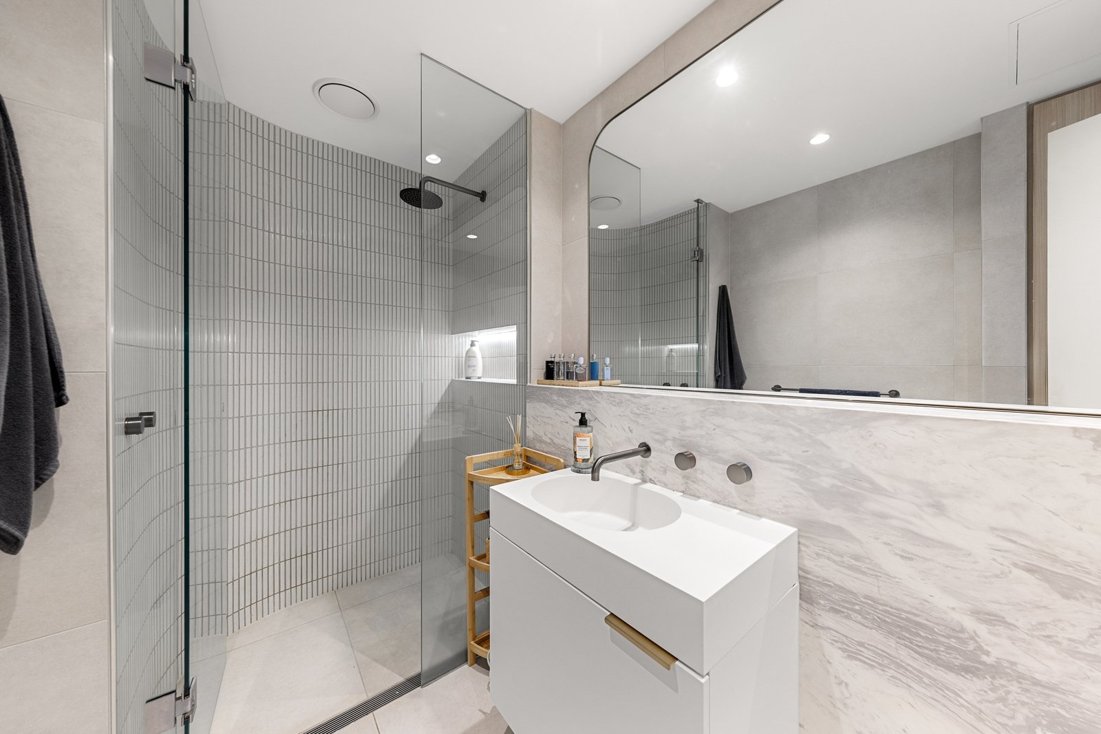 Step inside to discover a light-filled open-plan living and dining area, framed by floor-to-ceiling windows that welcome an abundance of natural light and create an effortless indoor-outdoor connection. The private balcony extends both the living room and bedroom, providing a tranquil space to enjoy your morning coffee, a glass of wine, or simply take in the skyline views. The galley-style kitchen features stone benchtops and splashbacks, quality stainless steel appliances, and an integrated fridge, catering to those who appreciate functional design and contemporary elegance.