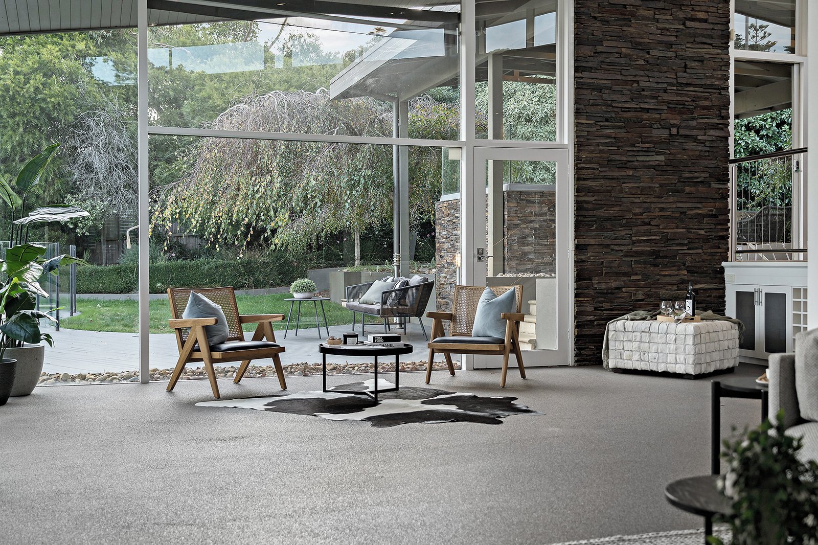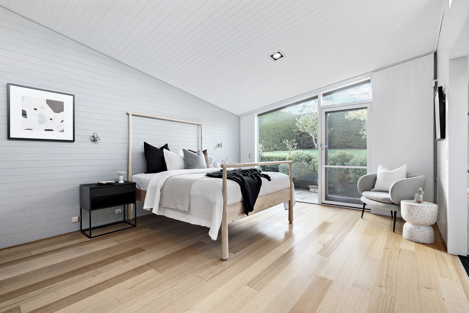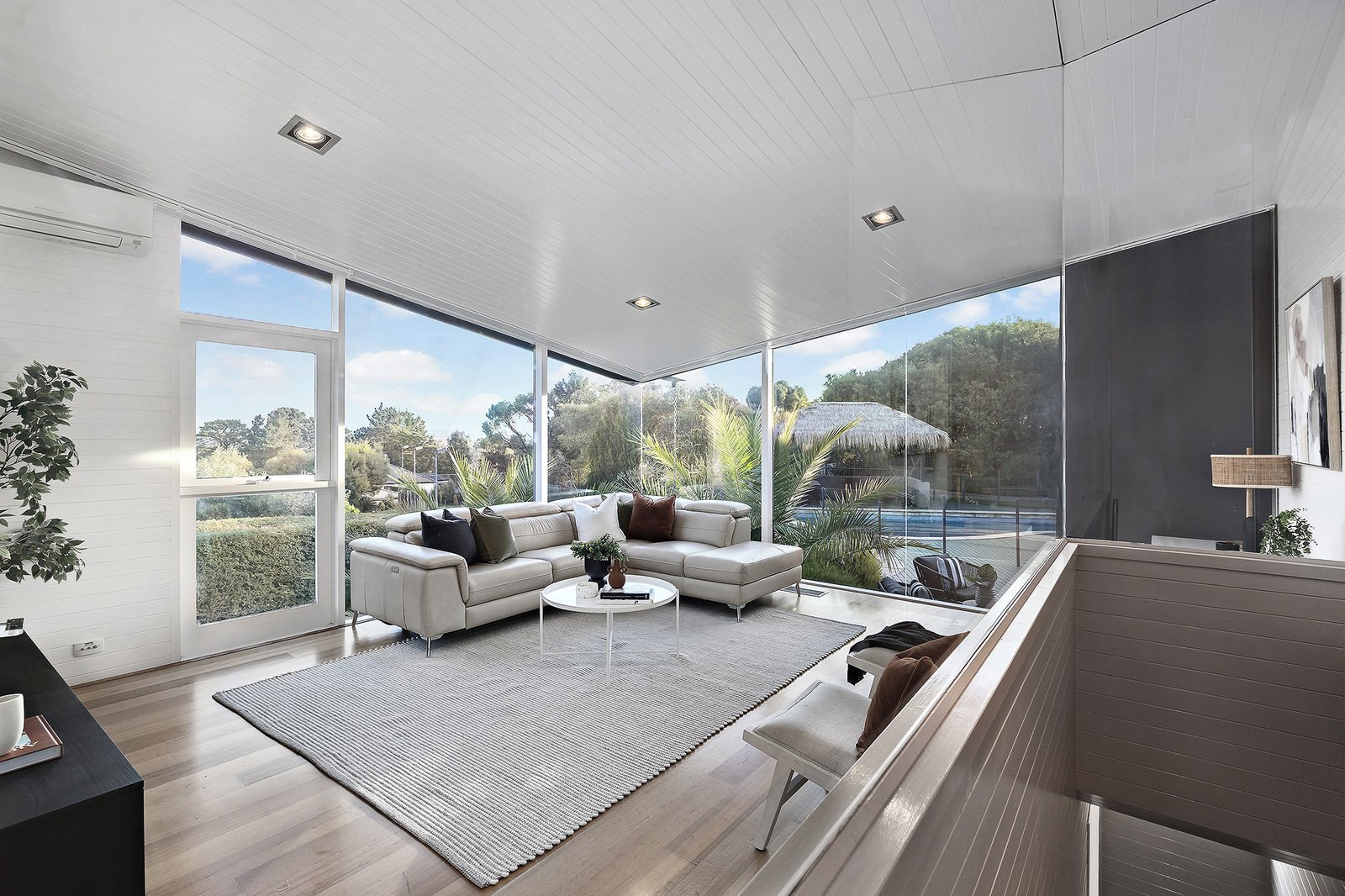 - Separate family room with timber-lined ceilings and garden views