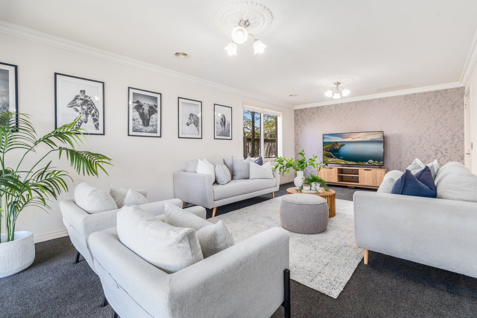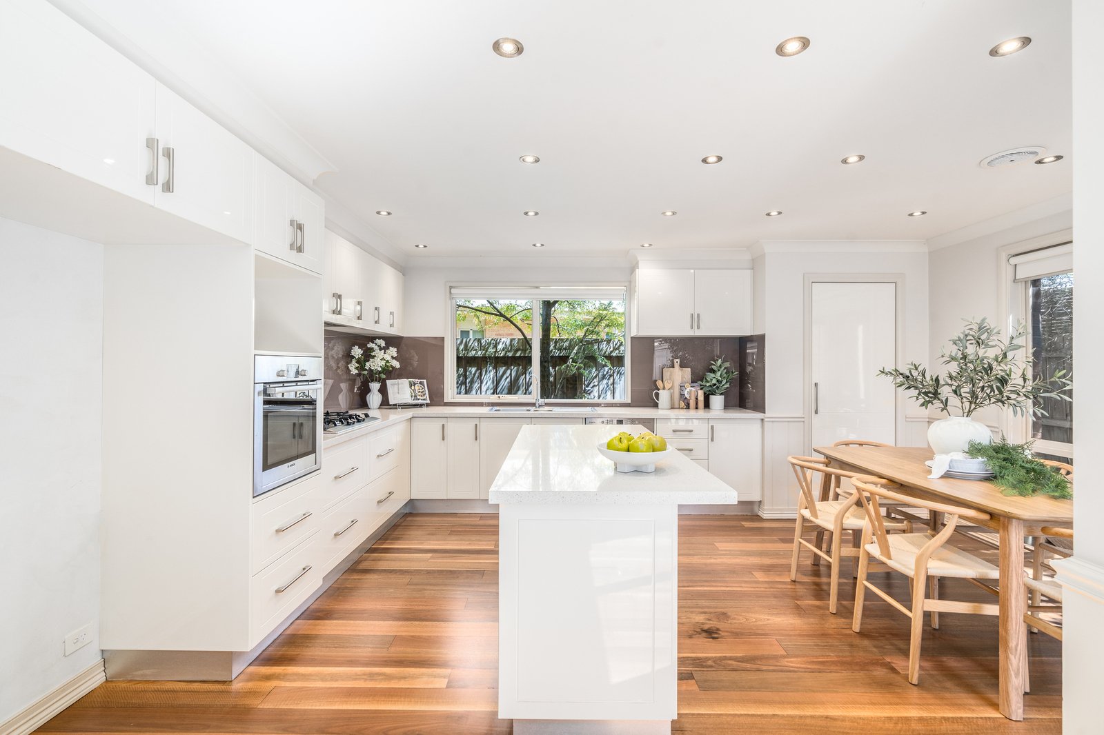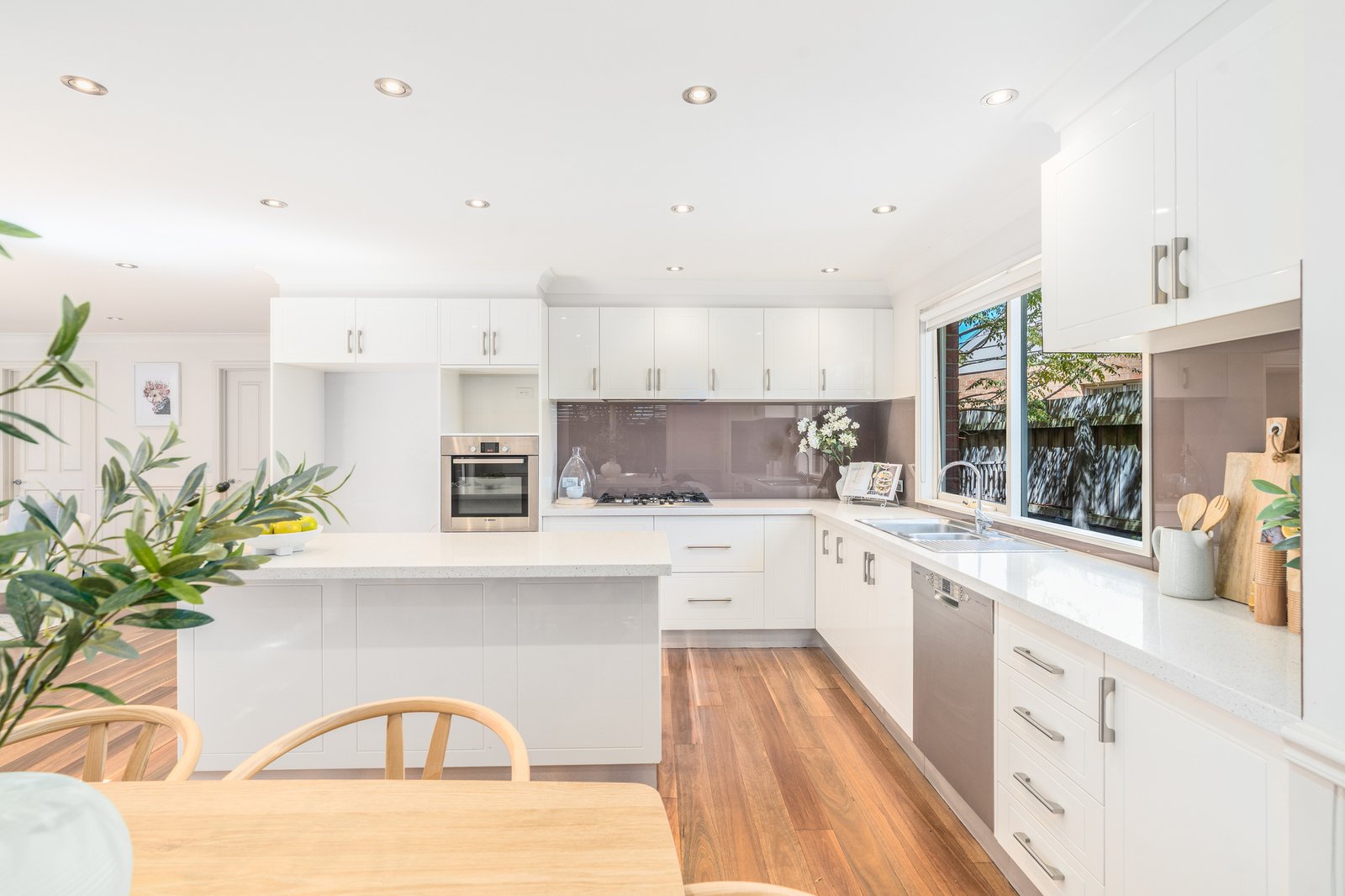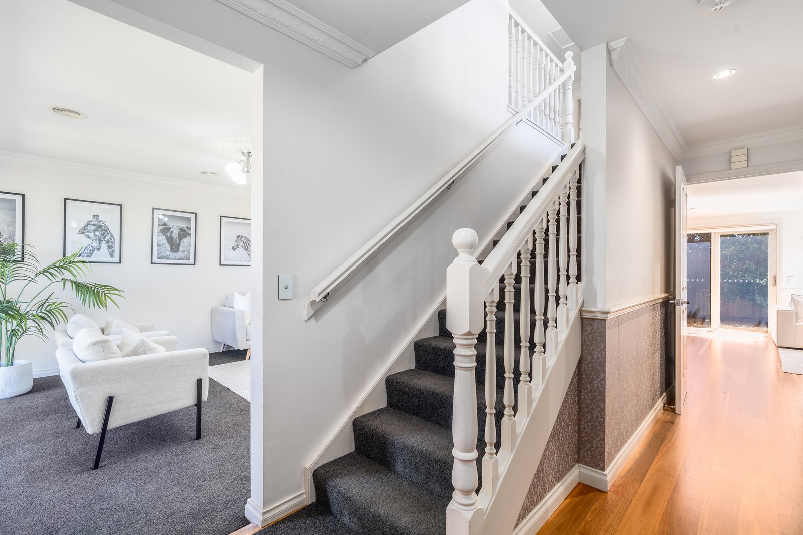 Set in a quiet family friendly cul de sac, the home is grand in stature and timeless in style. Stepping inside, you are greeted by a central staircase, timber floors, light neutral interiors and dado walls, introducing the classic style and quality within. Off the entry, a formal lounge features ornate cornice, ceiling roses and elegant lighting, offering a sophisticated space to retreat or entertain. An adjacent home office is fitted with built-in workstations and storage, providing a fully equipped space to work from home.