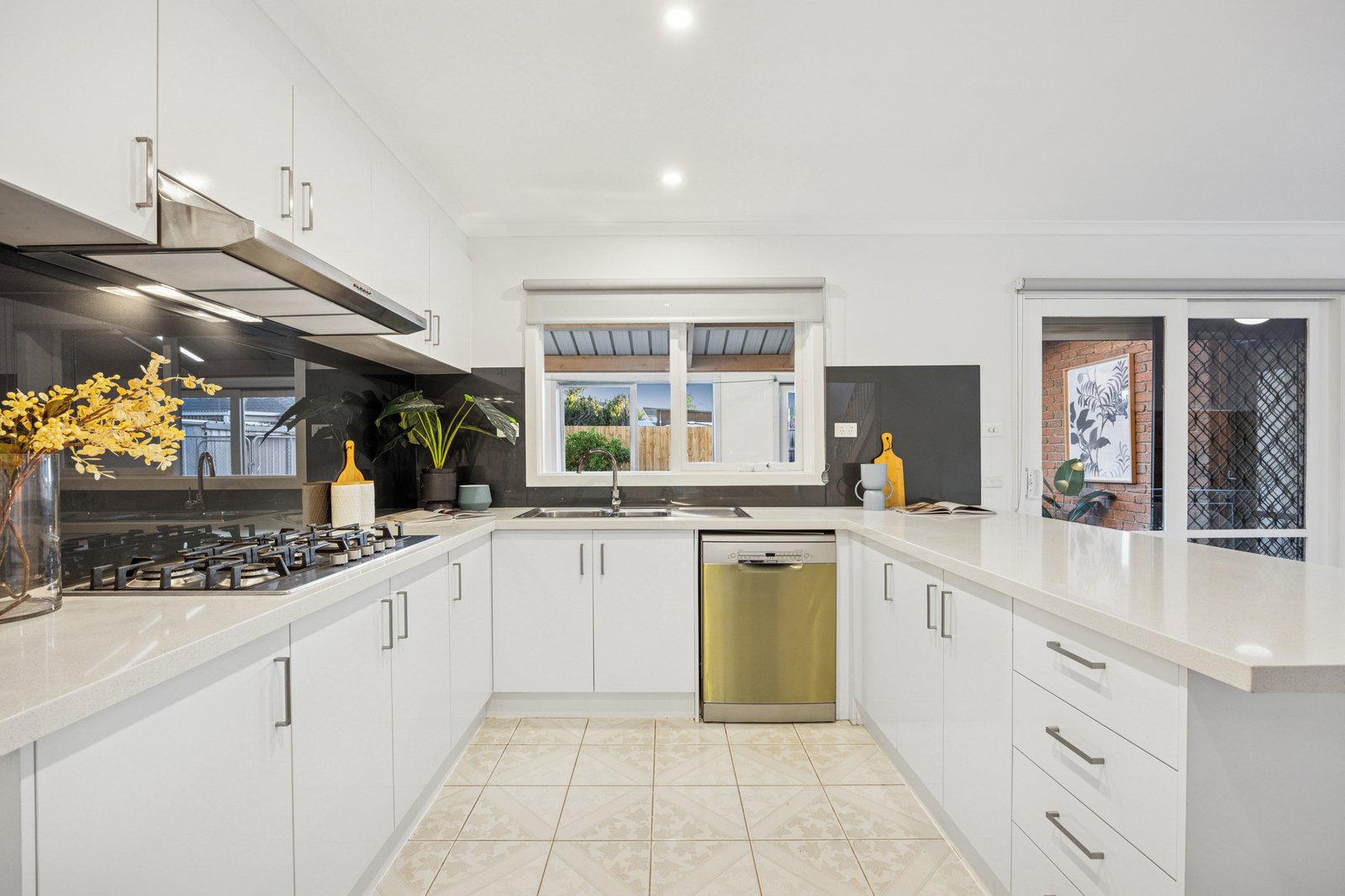 • Stylish stone-bench kitchen with quality appliances and ample storage