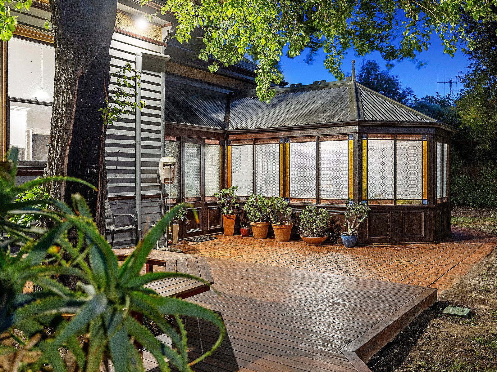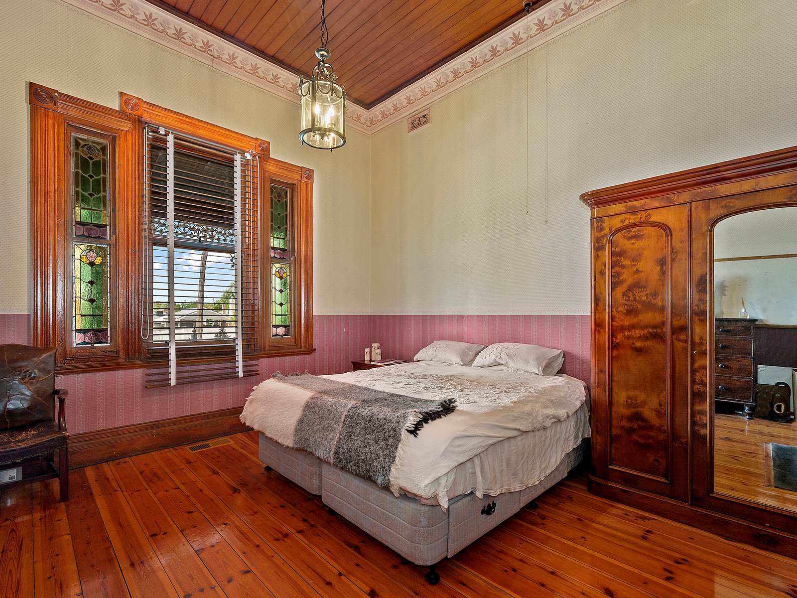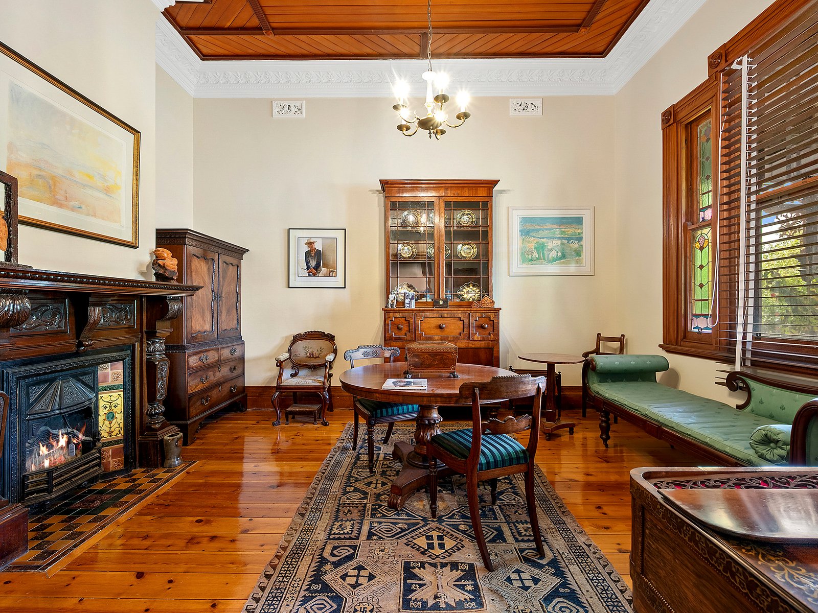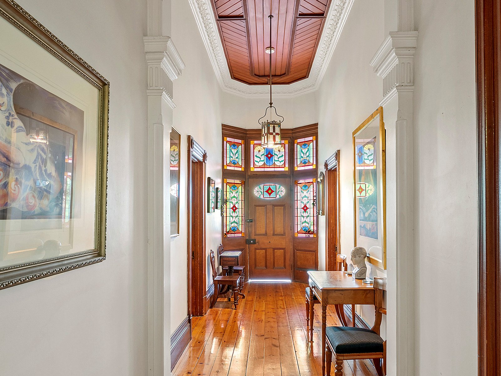 Inside, you will be captivated by the circa 1898 charm of the meticulously restored, four-bedroom, two-bathroom home. The brick-nogged construction boasts a unique leadlight-glazed entry bay opening to an arched hallway where soaring 4m timber-panelled ceilings add to the sense of grandeur. Polished timber floors, deep decorative cornices, and four functional open fireplaces with detailed timber surrounds add to the home's allure.