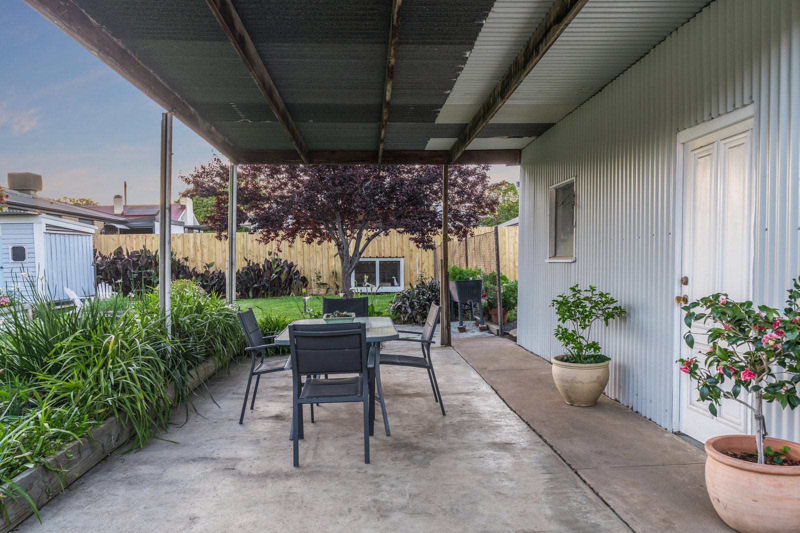 Comprising three well-proportioned bedrooms, each with built-in robes, the home is serviced by a central bathroom and separate toilet for everyday convenience. Large windows throughout invite an abundance of natural light, creating a warm and welcoming atmosphere. The generous living area offers plenty of space for the whole family to relax, complete with reverse-cycle air conditioning to ensure year-round comfort. The open-plan kitchen and dining zone is both functional and inviting, featuring ample storage and bench space, along with modern appliances including a ceramic cooktop, electric oven, and Bosch dishwasher. At the rear, a bright sunroom overlooks the secure backyard — the perfect spot to unwind while keeping an eye on the kids or pets at play.