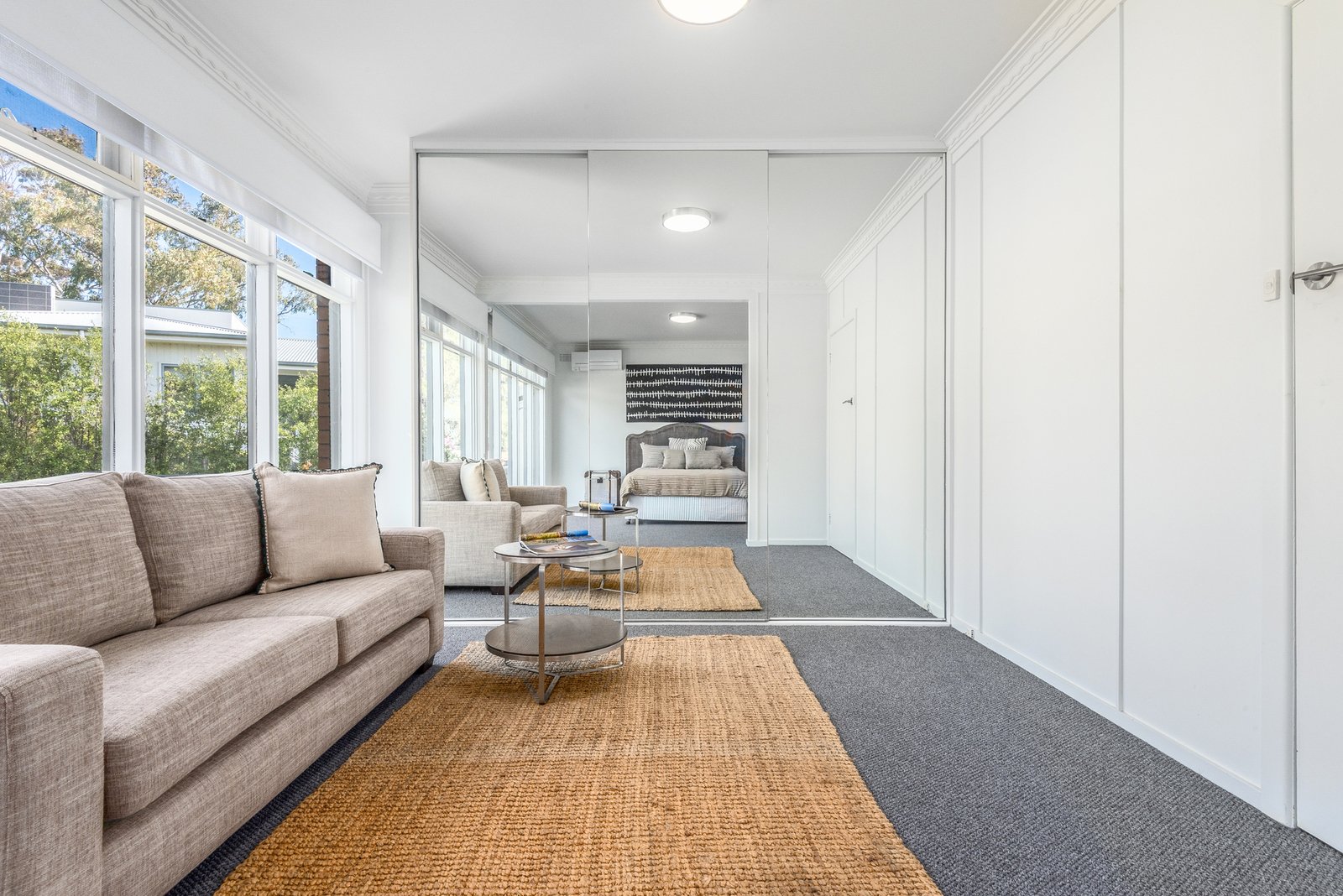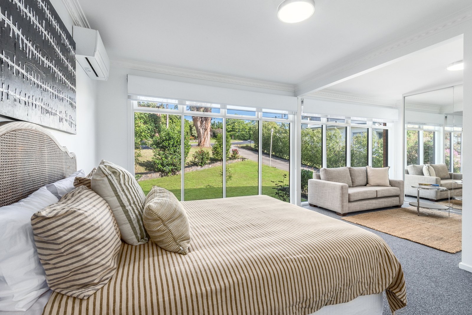 Nestled amongst established trees, the home presents an enchanting appeal. Inside, original features include polished timber floors, textural wall panelling and bold feature brickwork, showcasing the authentic charm of its era. From the entry, the main bedroom is luxurious in size, with a lounge retreat, walk-in robes plus built-in robes, and an updated ensuite presented in elegant contemporary finishes. Two further bedrooms on this level include built-in robes, serviced by a bathroom, separate shower room and separate wc, with a fourth bedroom on the lower ground level offering a privately zoned space perfect for teenagers or a guest room.