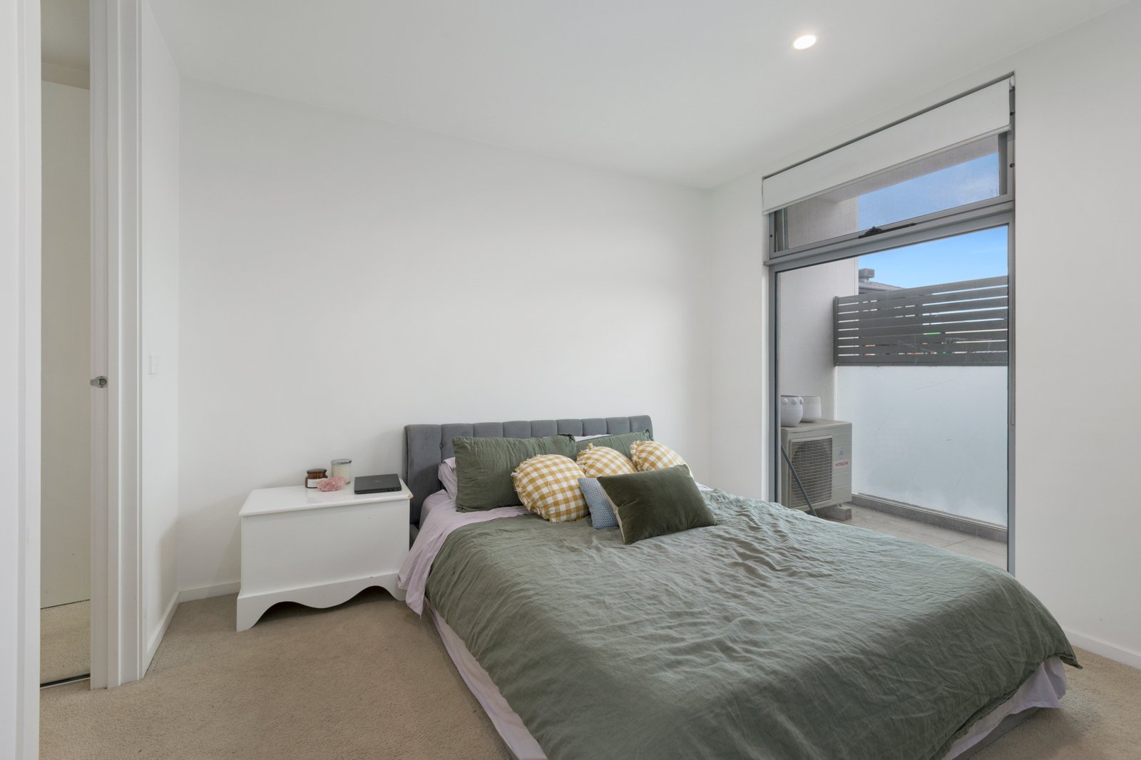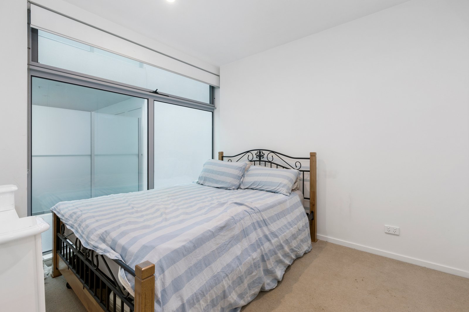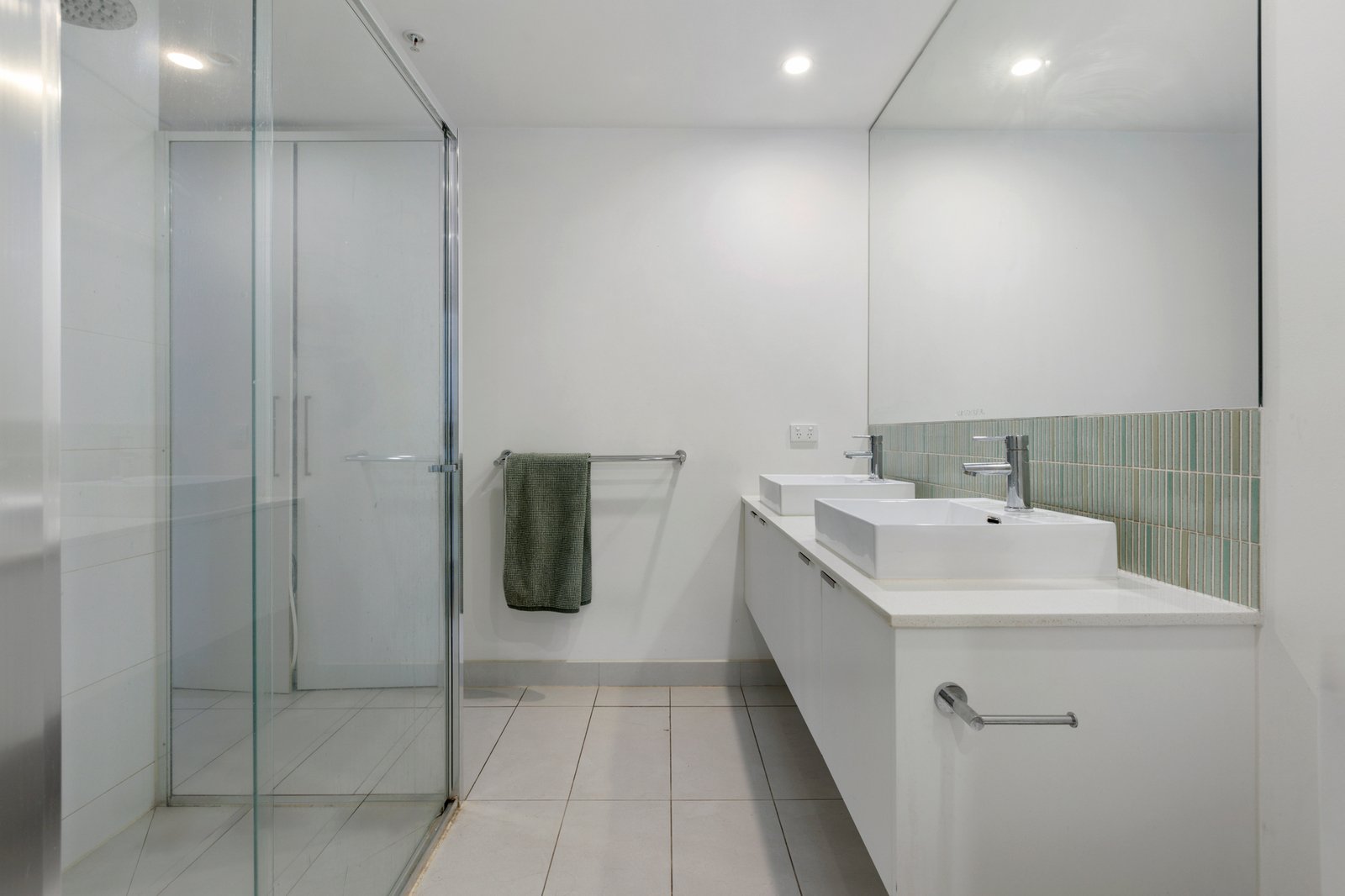 A designer bathroom with rain showers service the residence. Both bedrooms boast ample storage while also offered are split system heating/cooling, a European-style laundry, secure intercom entry and lift access to a basement parking space and storage cage.