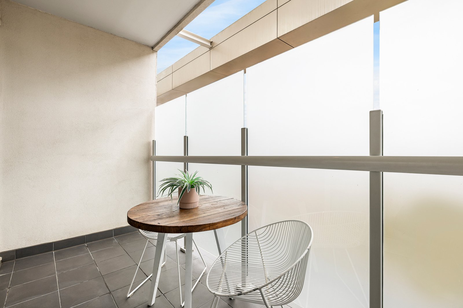 The bright main bedroom features fitted BIRs, while a sliding frosted-glass door introduces a versatile 2nd bedroom. A radiant bathroom and European laundry complete the clever layout. Super quiet behind double-glazed windows, this savvy first home or astute investment also includes secure entry, lift access, video intercom, R/C air-conditioning and basement security parking.