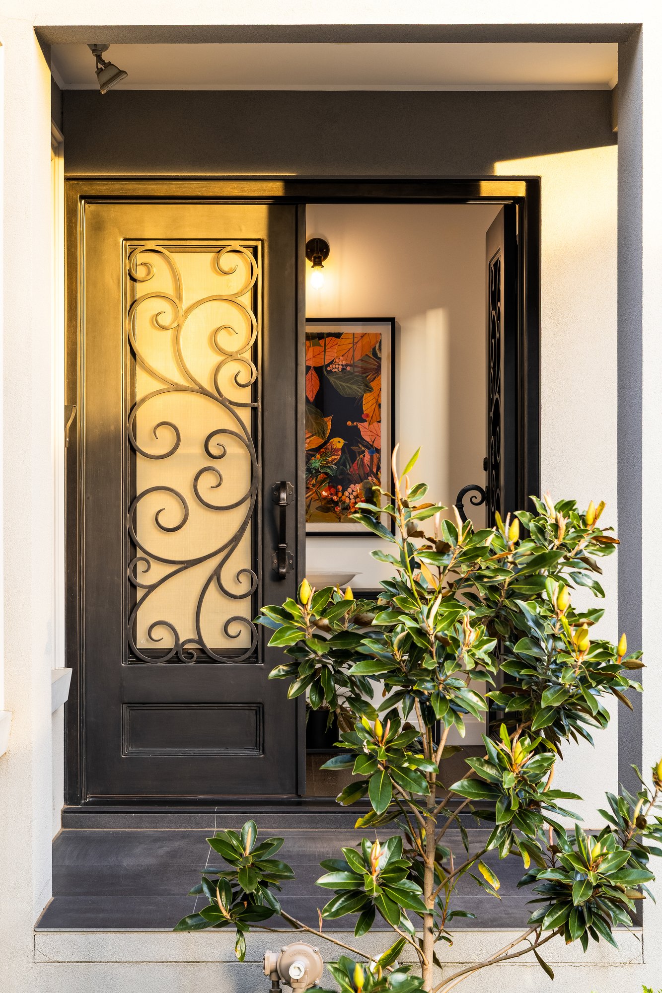 Upstairs, a generous retreat anchors three well-sized bedrooms, all fitted with built-in robes, and stylish central bathroom—an ideal arrangement for growing families seeking space and privacy. Additional highlights include soaring high ceilings that enhance the sense of space, a grand wrought-iron double front door that sets a luxurious first impression, heating and cooling for year-round comfort, a powder room, large laundry, under-stair cellar storage, 4.15 KW solar panel system and an oversized double garage with internal access.