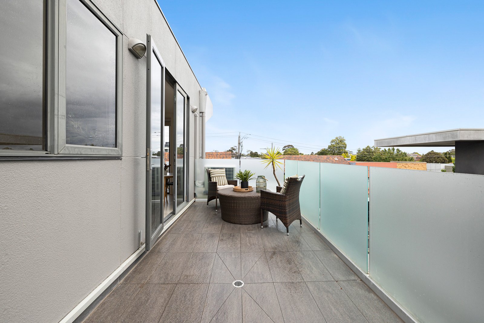 Elevated, sun-filled and exceptionally private, this top-floor 2-bedroom apartment sits in the front corner of a boutique building of just 21 residences. Nestled in a quiet wing shared with only three other residences, it offers peaceful, secure and wonderfully convenient living in the heart of Highett.