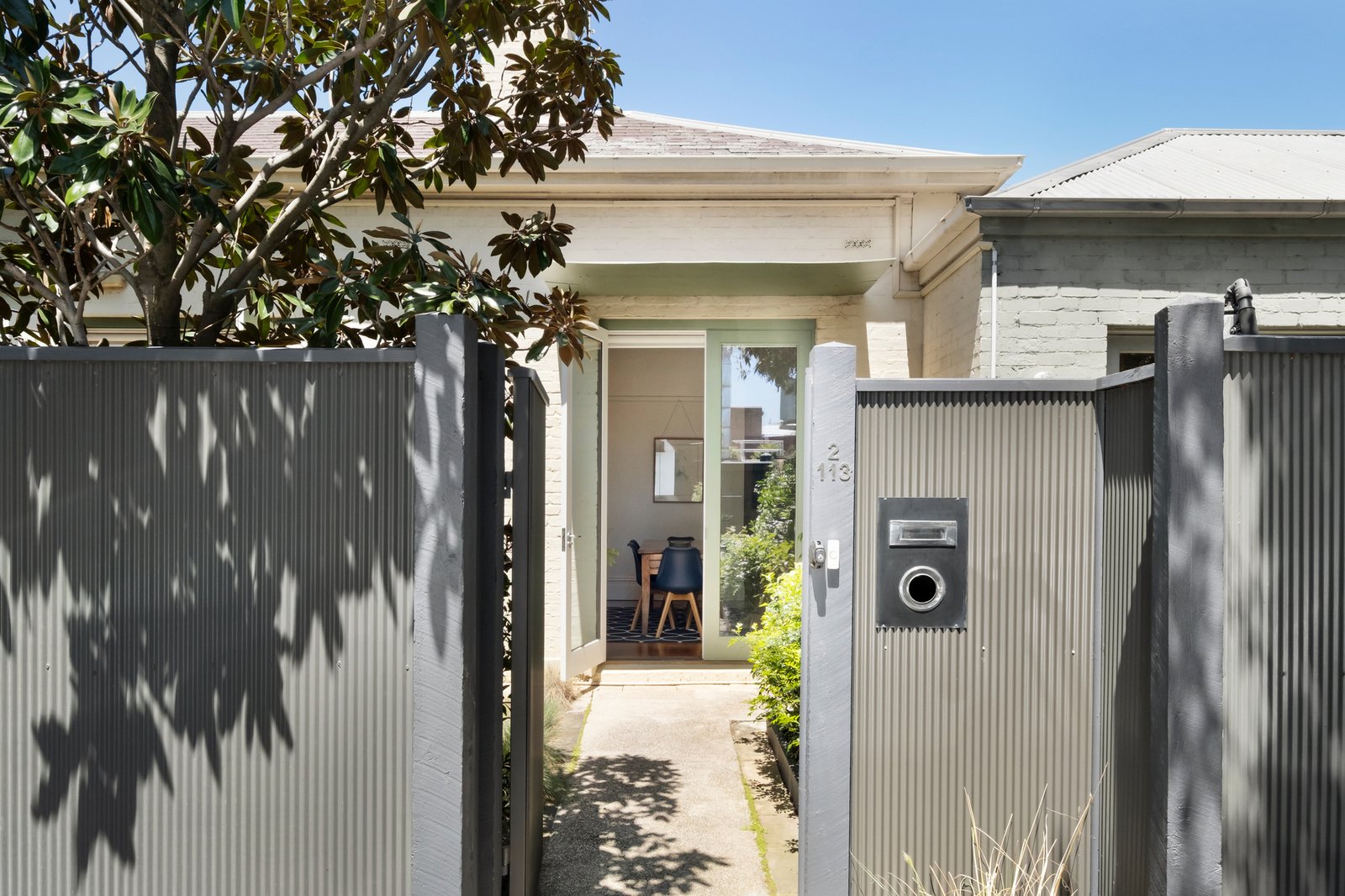 Boasting two bedrooms with built-in robes including a master featuring an ornamental fireplace, a luminous lounge and dining area with soaring 3.5-meter ceilings, split system and a central fireplace, this home perfectly balances elegance and relaxed comfort. The gourmet kitchen complete with gas cooking, dishwasher and euro laundry seamlessly complements the sophisticated interiors. Indoor-outdoor living is effortless with both front and back courtyards ideal for entertaining, morning coffee or quiet reflection. Adding practicality, the property includes storage shed, two secure tandem car parks, every detail is designed to enhance lifestyle and functionality without compromising privacy.