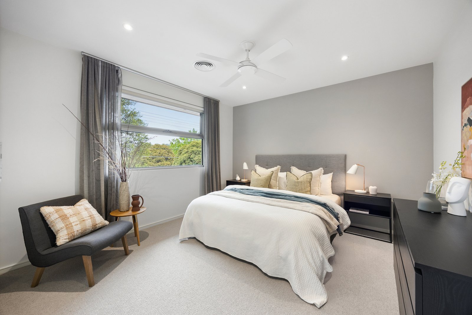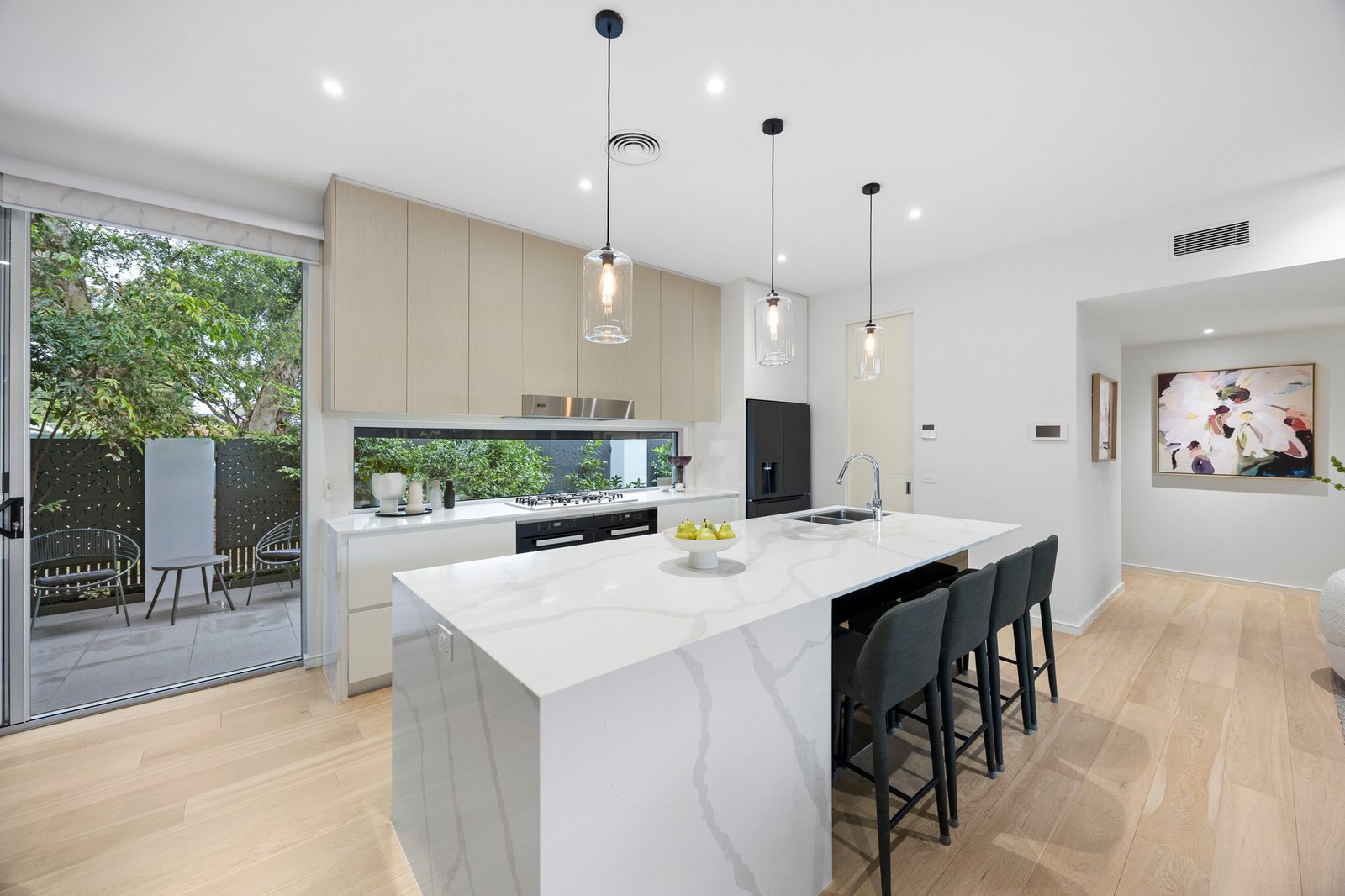Accessed via Teddington Road and cocooned within gardens of rare beauty, this stunning three bedroom, two and half bathroom plus study residence reflects a visionary approach to contemporary living, where soaring ceilings, curated materials, and shifting light define every space.