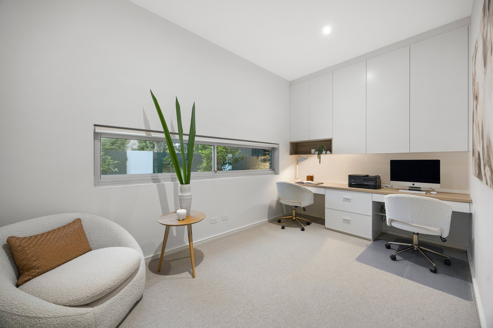 Privately zoned, the master suite enjoys a rear outlook, a walk in robe, and a luxurious twin-vanity ensuite, while a fitted study captures front garden views - an ideal setting for focused work.