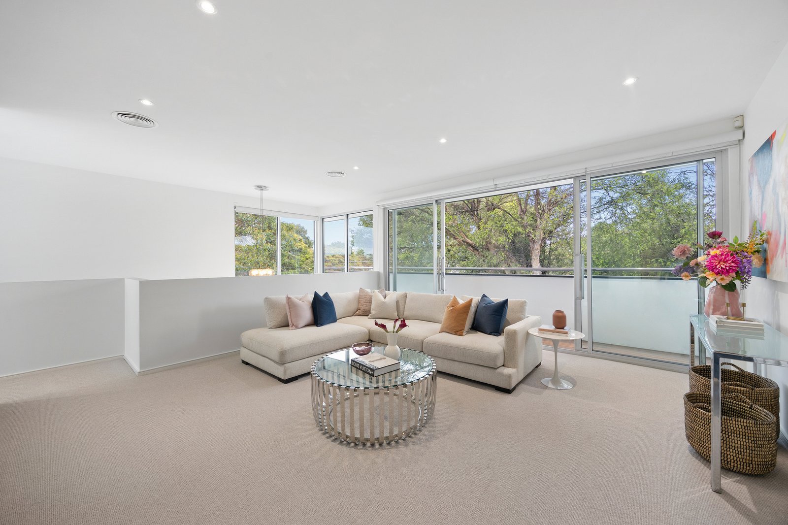 Upstairs, plush textures and abundant light define a level dedicated to comfort. A lavishly proportioned retreat, illuminated by a dramatic wall of glass, opens to a wide balcony suspended among the treetops - an idyllic vantage for quiet pause. Two sizeable bedrooms - each with robes, one with ceiling fan - share a sumptuous fully tiled bathroom with bath and separate shower.