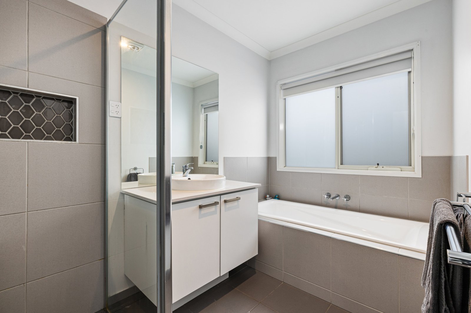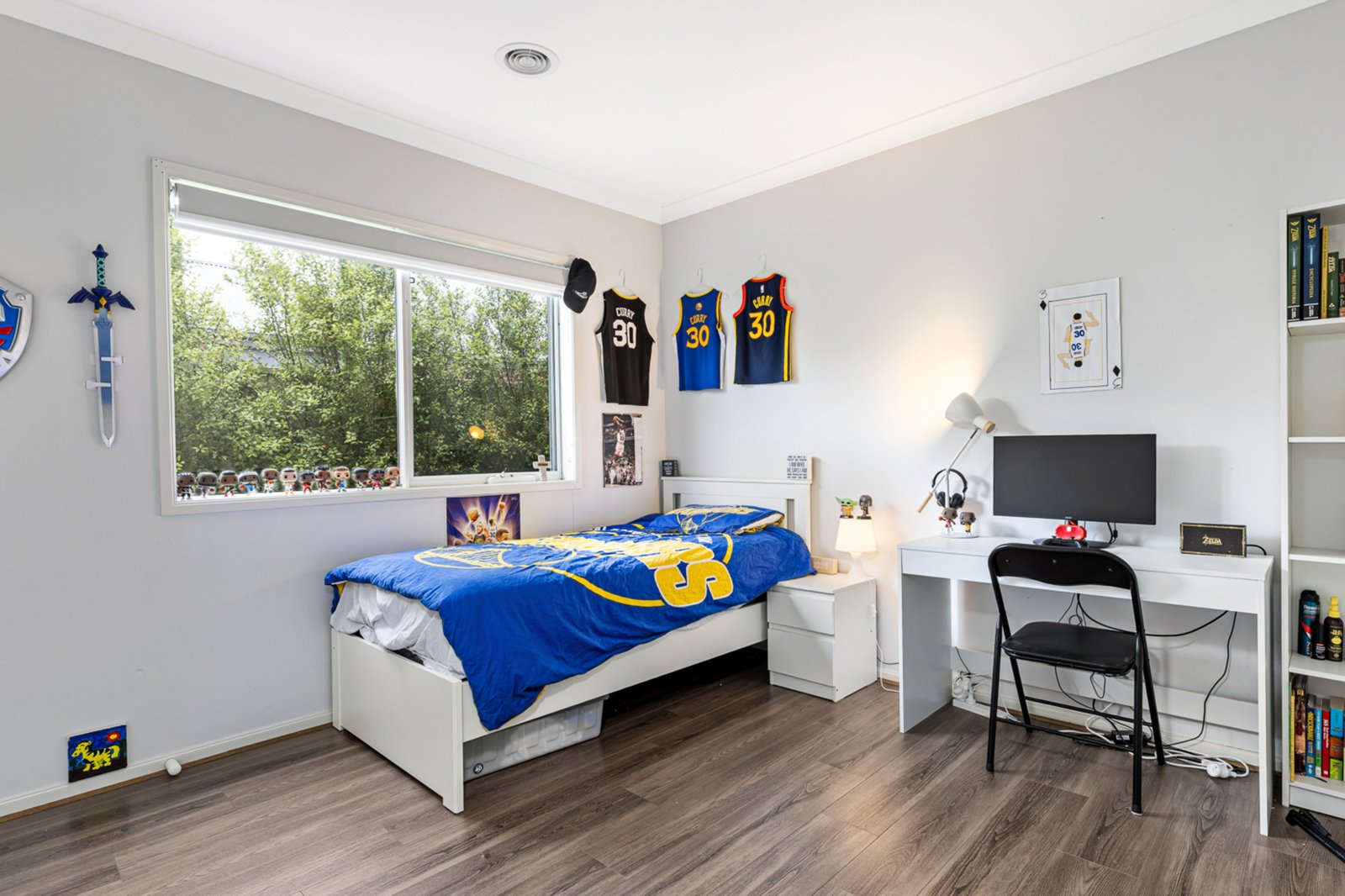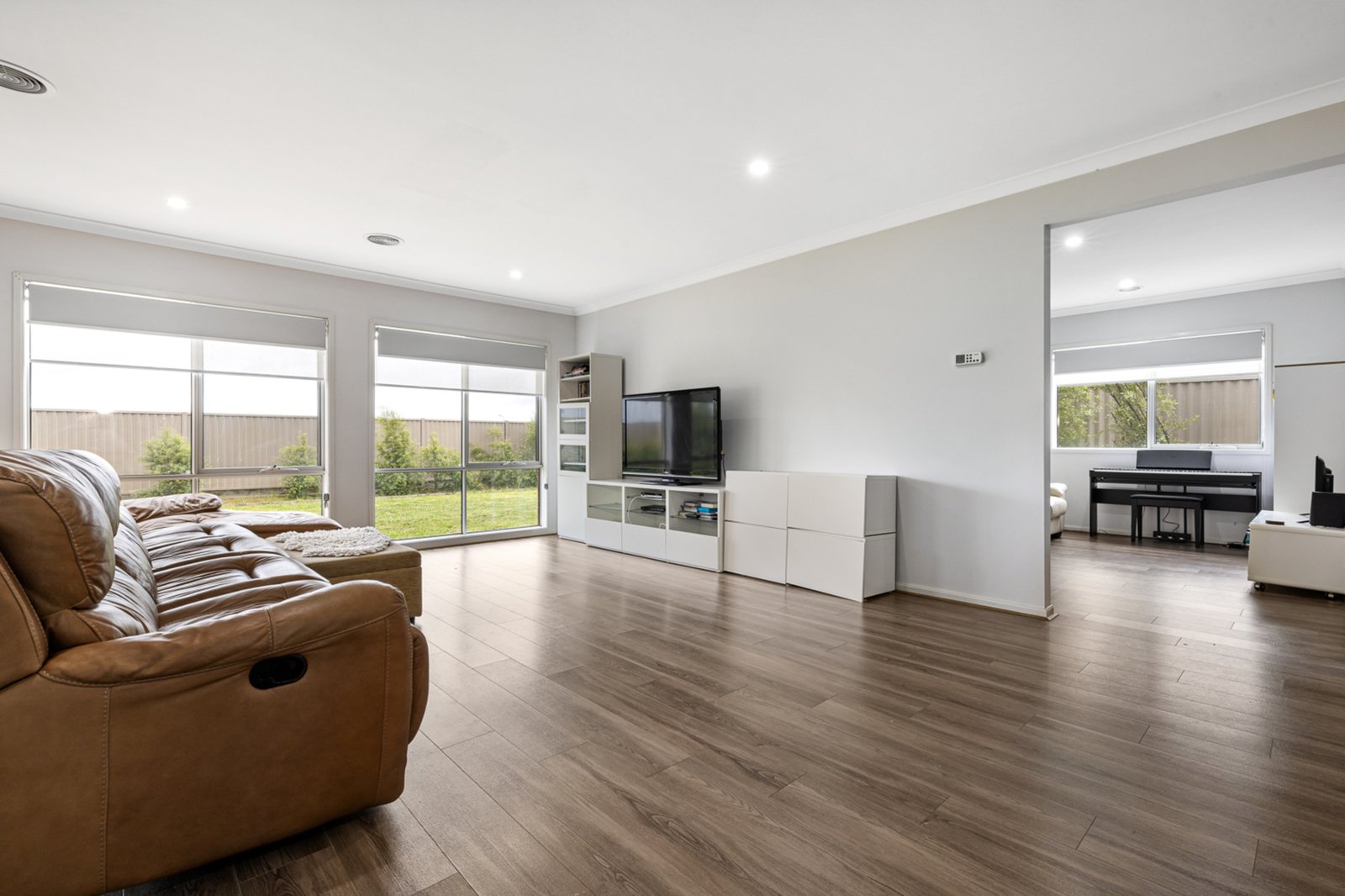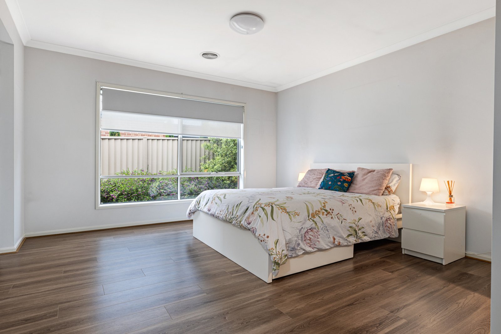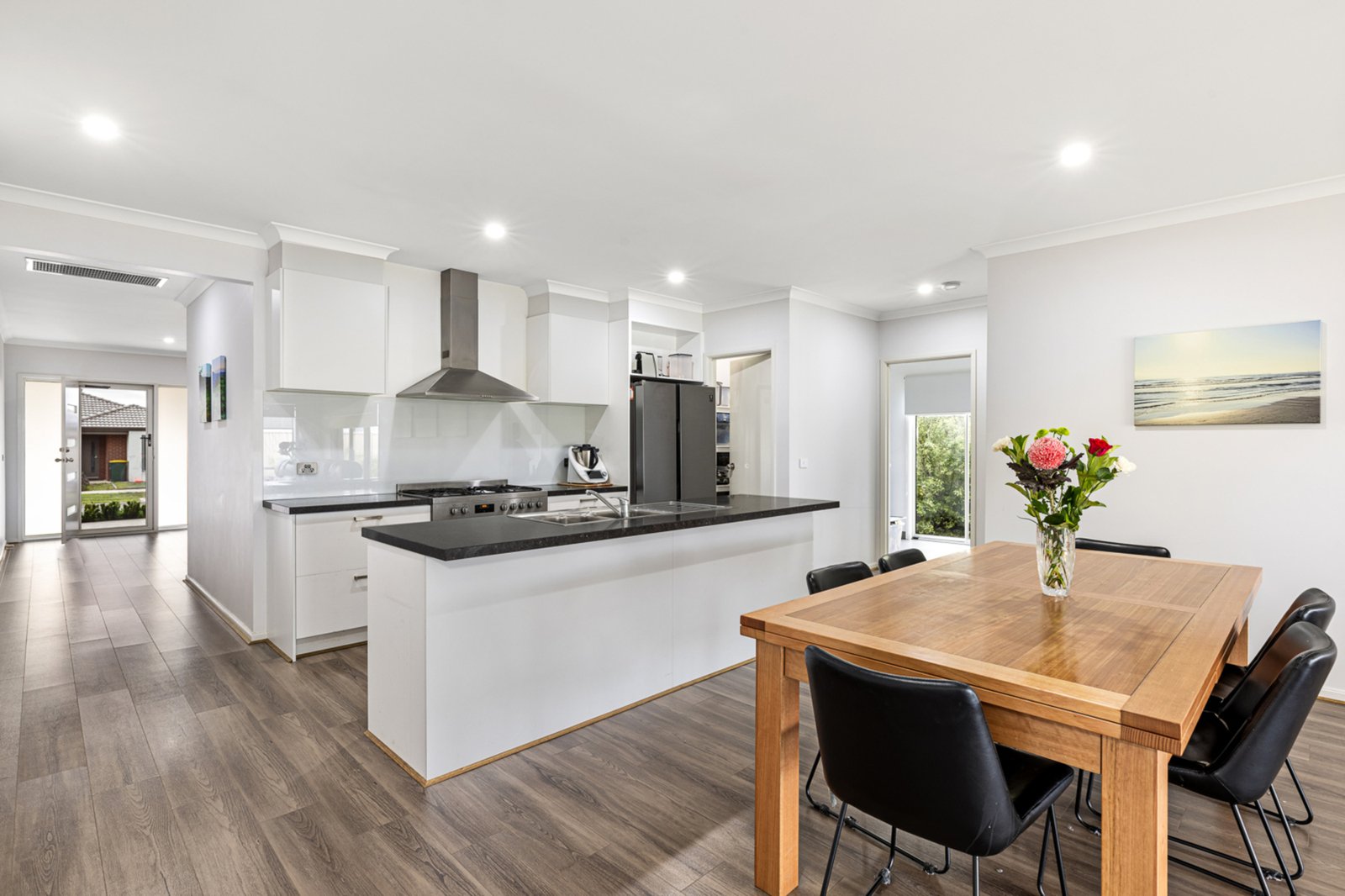 The open plan kitchen has an island bench with 900mm stainless appliances and dishwasher has a WIP and a large laundry adjacent. The meals and family area overlook the neat back yard and there is an alfresco dining space on the south west corner. Additionally, there is a bedroom close to the kitchen which could double as a perfect study if you were working from home.