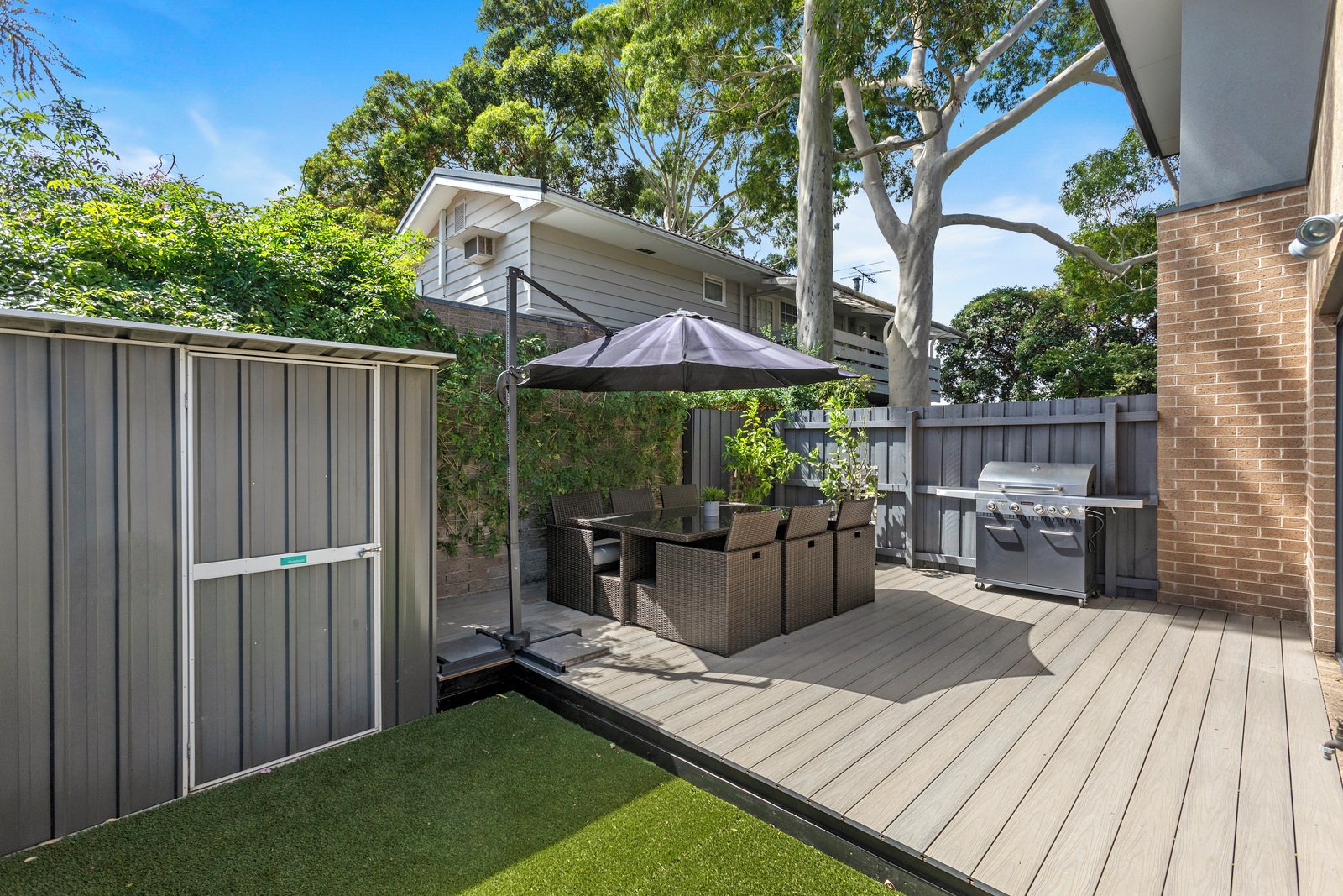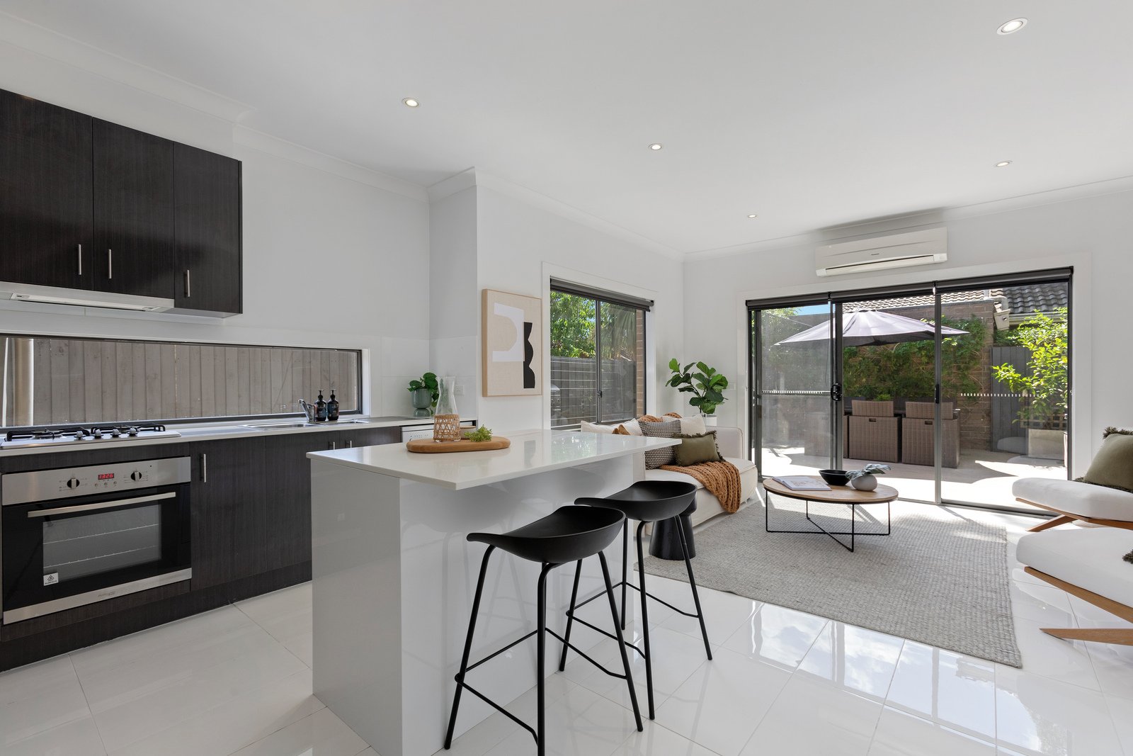 Walk home from the station, step in from the shops, find two-storeys of easy living and a courtyard to be wrapped in! Set quietly to the rear at one of the Southland precinct’s leafiest loveliest low-traffic addresses, this two bedroom, 1.5 bathroom townhouse stands tall with sun-catching easy living inside and out. Designed to entertain with open-plan living stepping out to a carefree Modwood deck, this light-filled home shines with a sophisticated European appliance kitchen lit by a wide window-splashback. and all-day sun in a northerly wraparound courtyard.