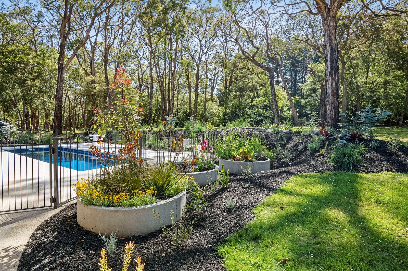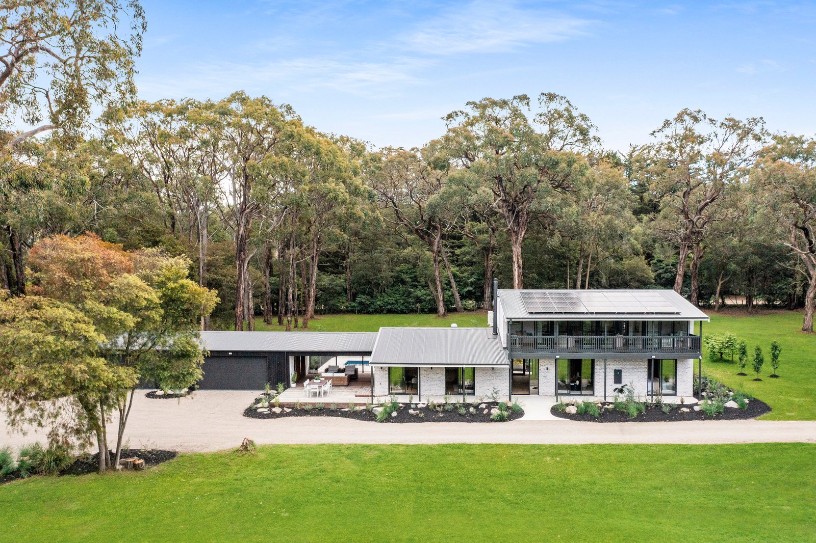 Garaging for four vehicles, a 12.8kW solar array, water tanks, ducted heating and cooling, security system and electric gates deliver exceptional turn-key appeal. Ample space for paddocks, farming pursuits or level play spaces extend the property’s versatility. An incredible private walking track meanders through the native bushland at the rear, while nearby attractions include surfing or sailing at Point Leo Beach, walking the Red Hill-Merricks Trail, and savouring local produce and wine at a myriad of establishments including Paringa Estate, Cellar and Pantry, Millers Bakery and Merricks General Store.
