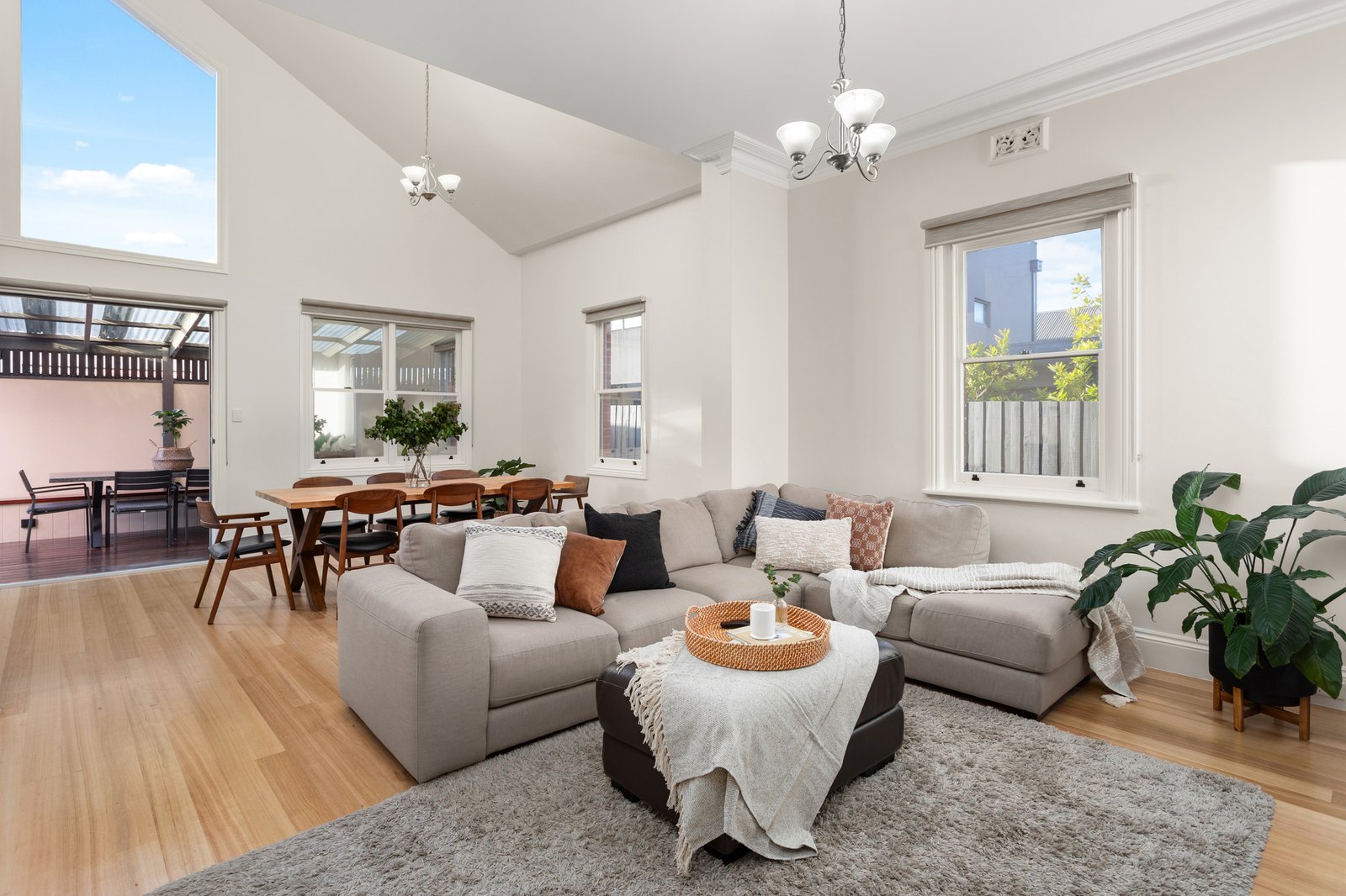 At the heart of the home, a generous open-plan living and dining zone is bathed in natural light and seamlessly integrates with the covered alfresco deck—perfect for year-round gatherings, relaxed weekend barbecues or simply unwinding outdoors. The well-appointed kitchen features ample storage, quality appliances and a practical layout overlooking the social hub of the home.