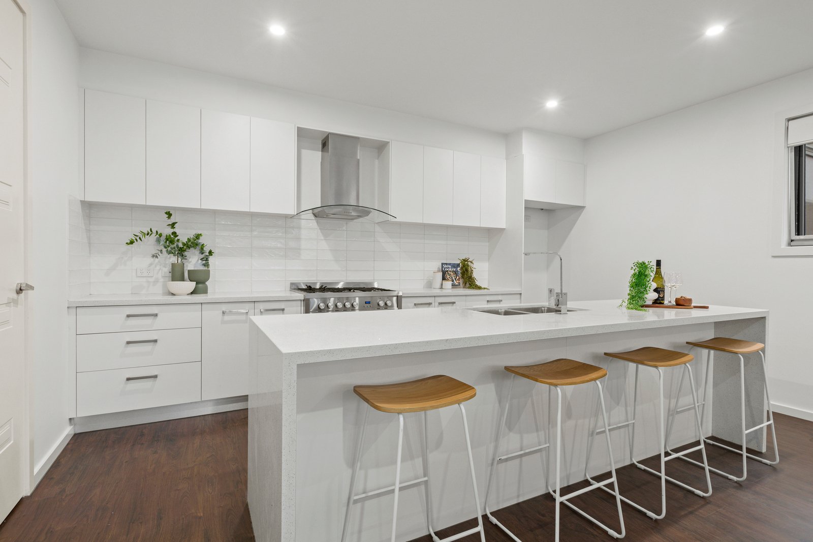 Quality appliances are among the standout features of the sophisticated gourmet kitchen - including a 900mm freestanding oven and stainless steel dishwasher. Anchored by a waterfall-edge stone island, it also boasts ample storage, including a walk-in pantry.