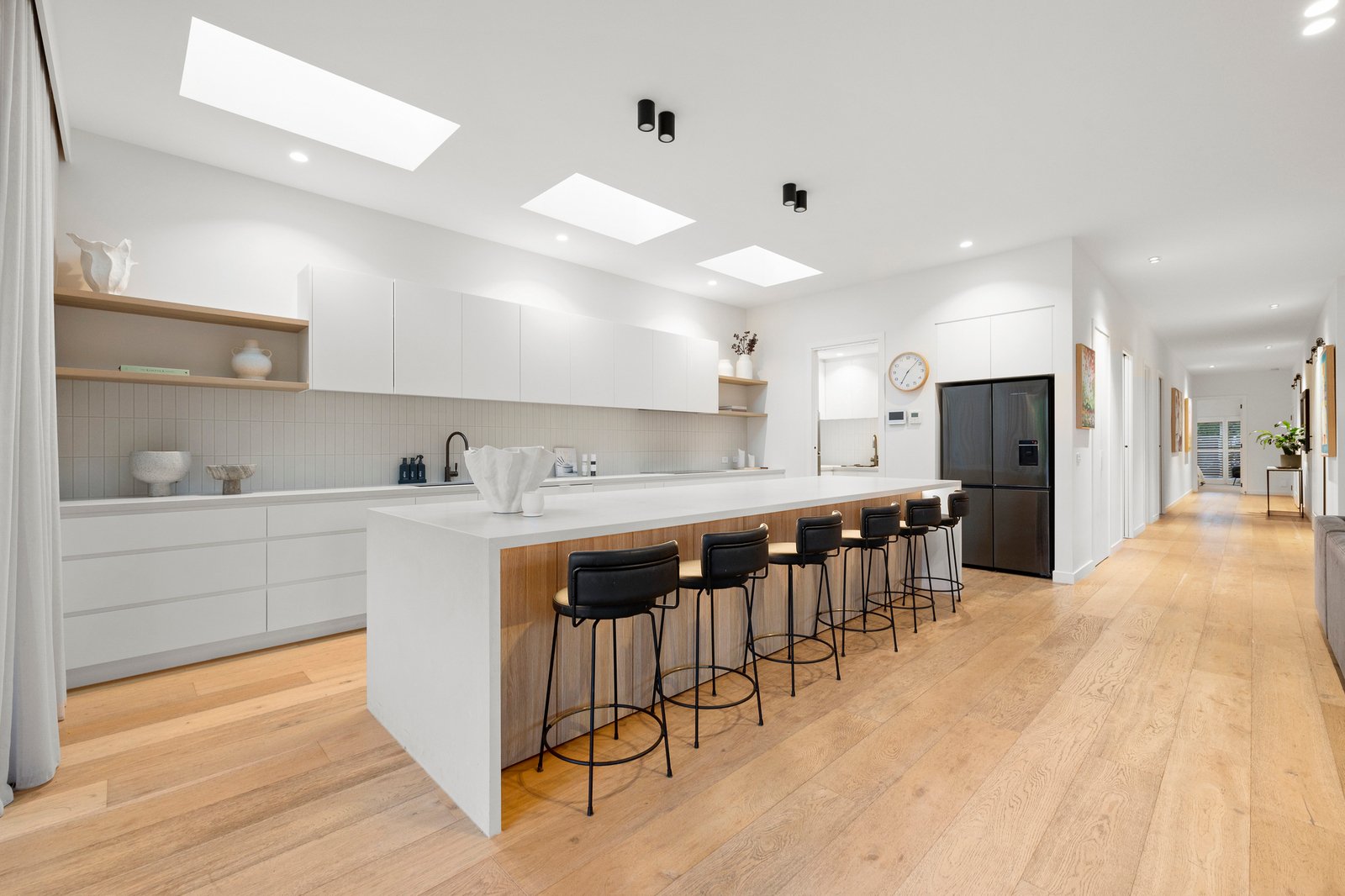 The designer kitchen has been finished to impress and boasts an expansive entertainer’s island, butler pantry, Zip tap and premium Bosch appliances – including two dishwashers and an induction cooktop.