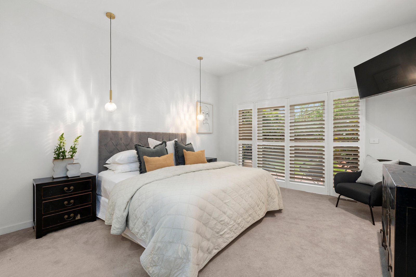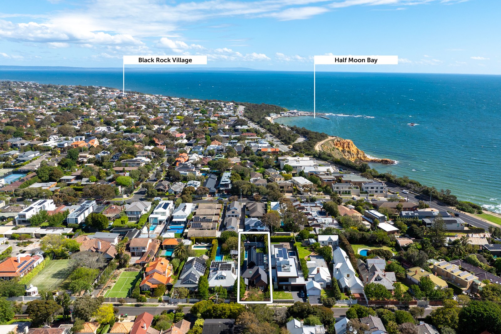 In a prized low-traffic beachside pocket of Sandringham – just doors to sand and sea – the home opens to interiors enriched by quality appliances, including wide-board oak floors and chic plantation shutters.