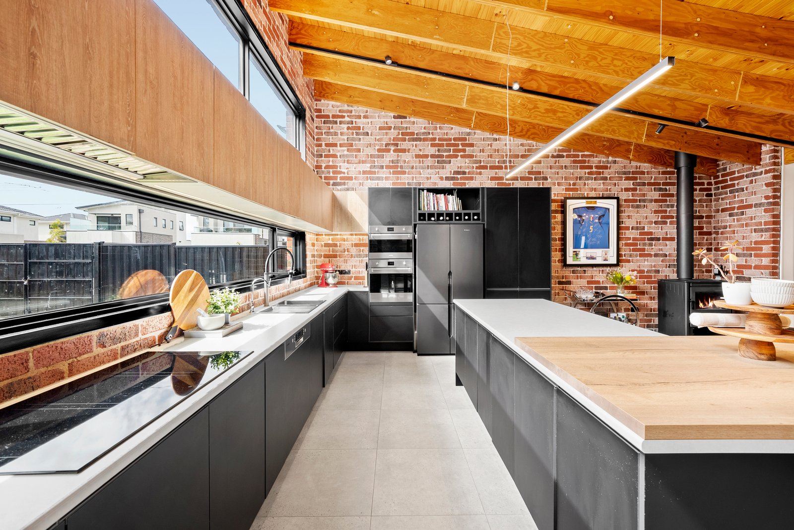 Perfect for families, investors or developers seeking future upside, this home blends stylish renovations with genuine long-term value. The designer kitchen is a standout, showcasing matte-black joinery, dual ovens, an oversized island, sleek stone-look surfaces and striking exposed brickwork beneath soaring timber-beam ceilings. Ample windows bring in natural light, while sliding doors provide seamless connection from the dining and living zones to the covered alfresco. Comfort is assured with hydronic heating, split-system cooling, updated flooring and high ceilings throughout.