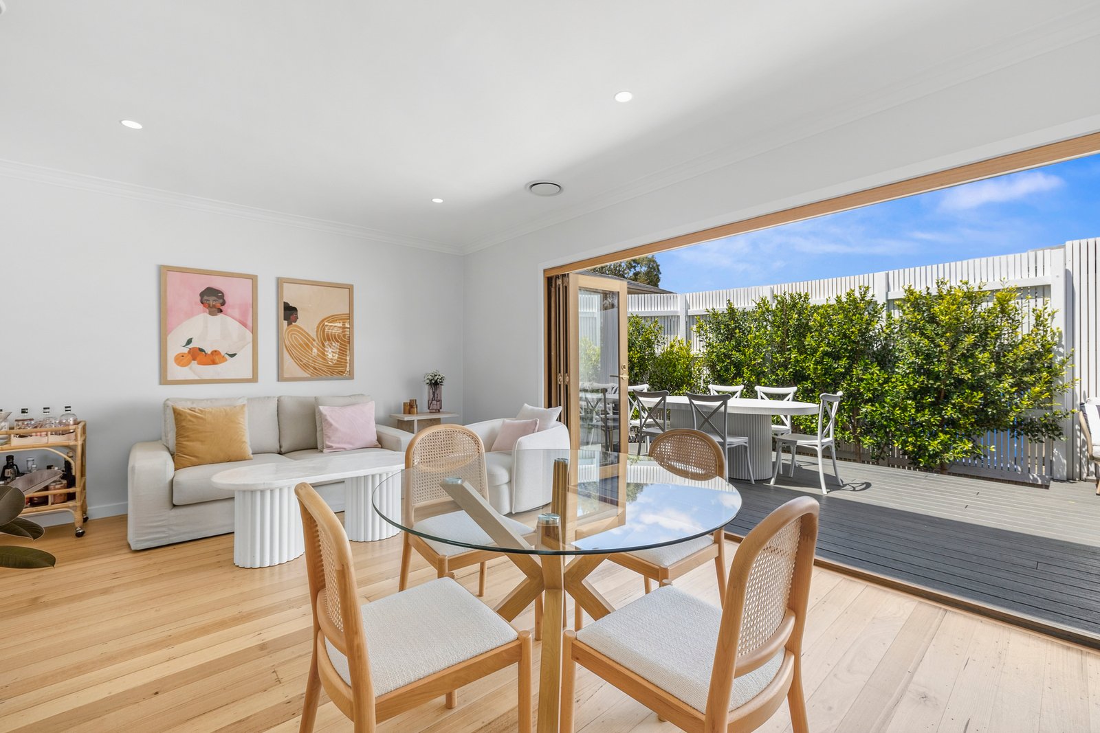 Welcomed by hardwood floors that draw you in, the home impresses with an open plan lounge, dining and a decked alfresco via broad bifold doors and a servery that yield seamless flow. Supported by a lush grassed garden and an inviting kitchen with induction cooking, integrated fridge, integrated dishwasher and robust stone topped benches.