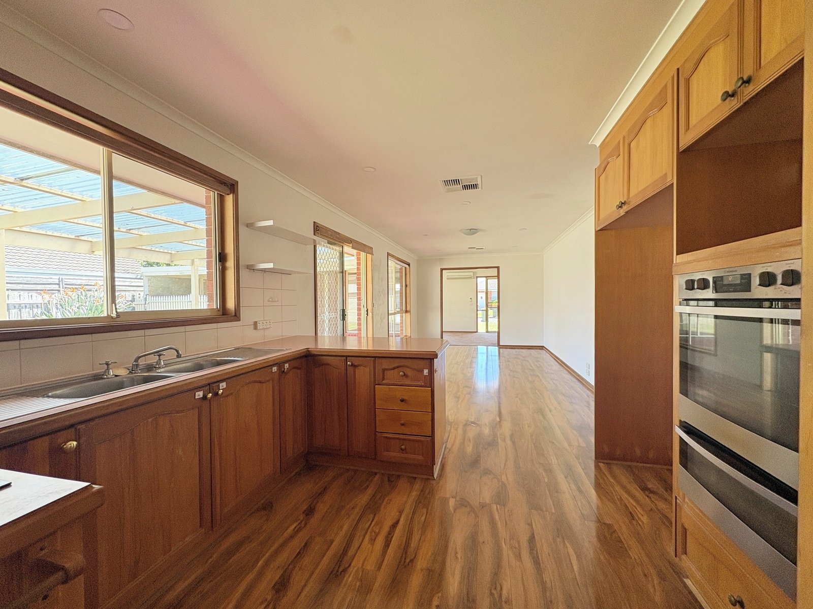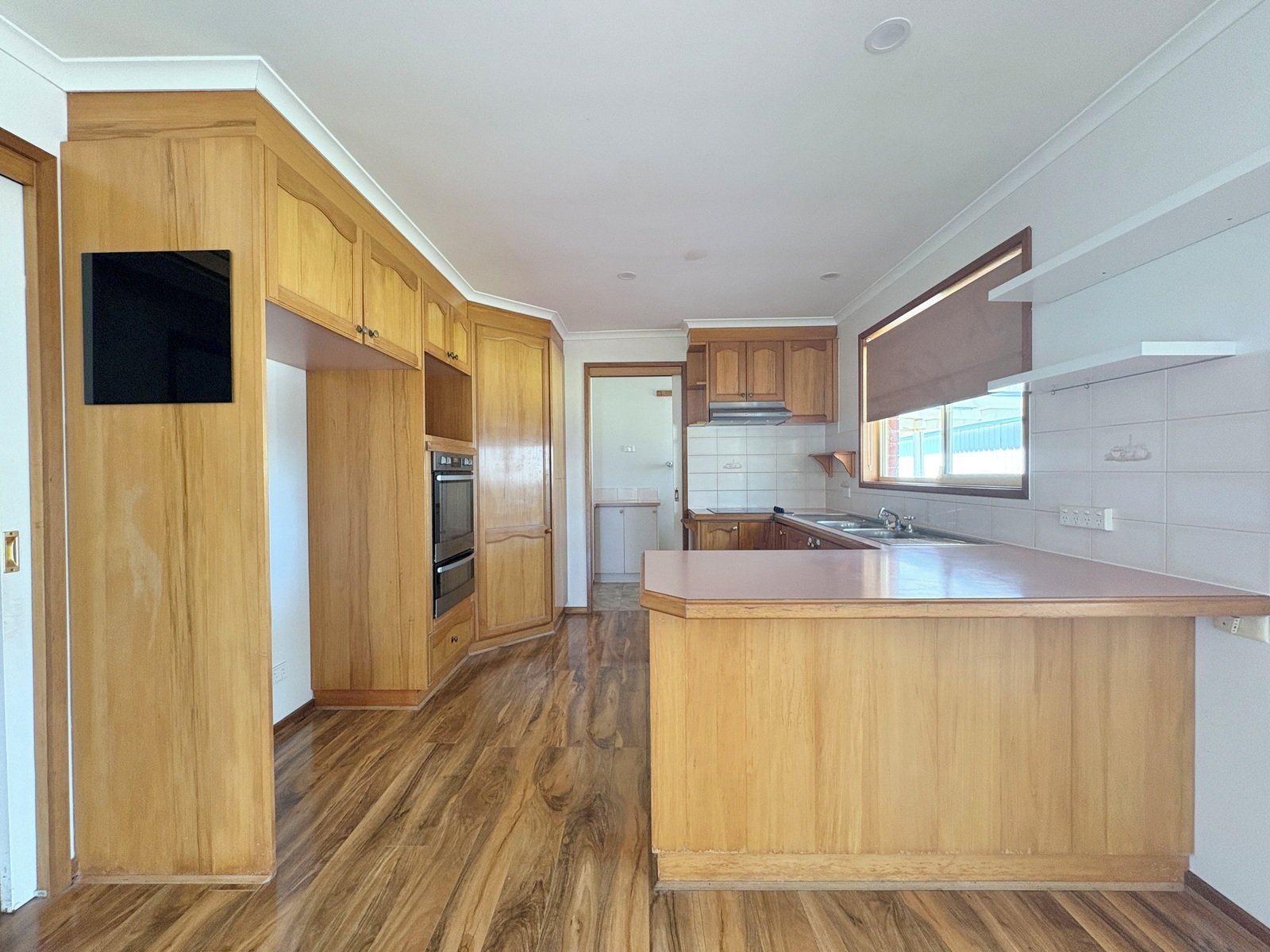 - Timber kitchen, wall oven, electric cooktop & corner pantry