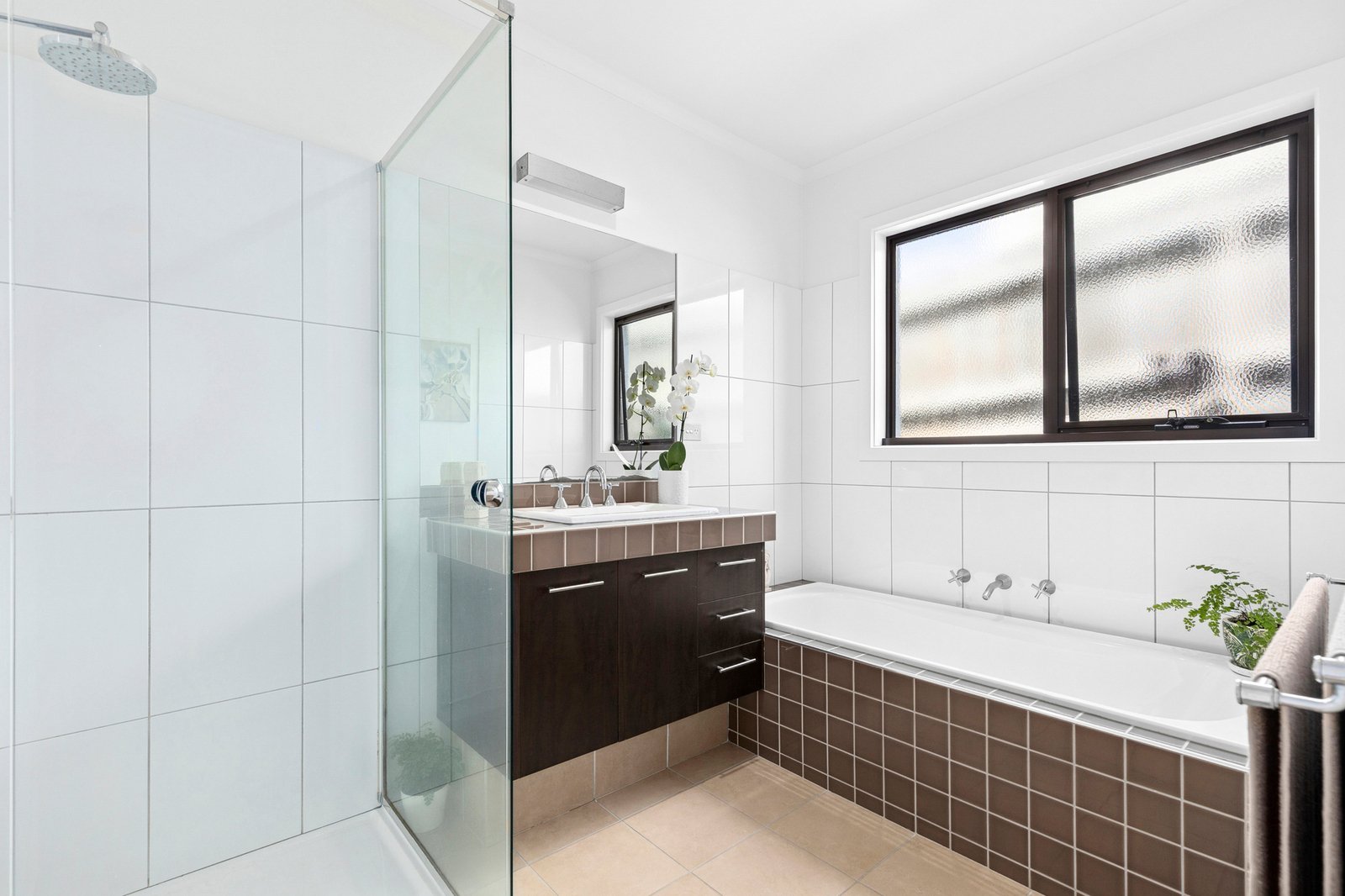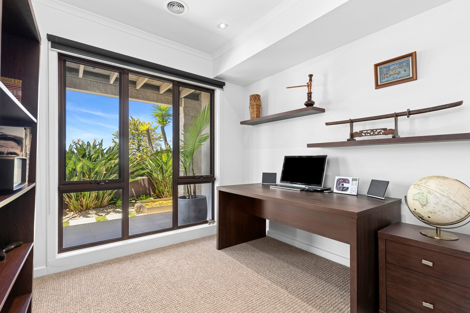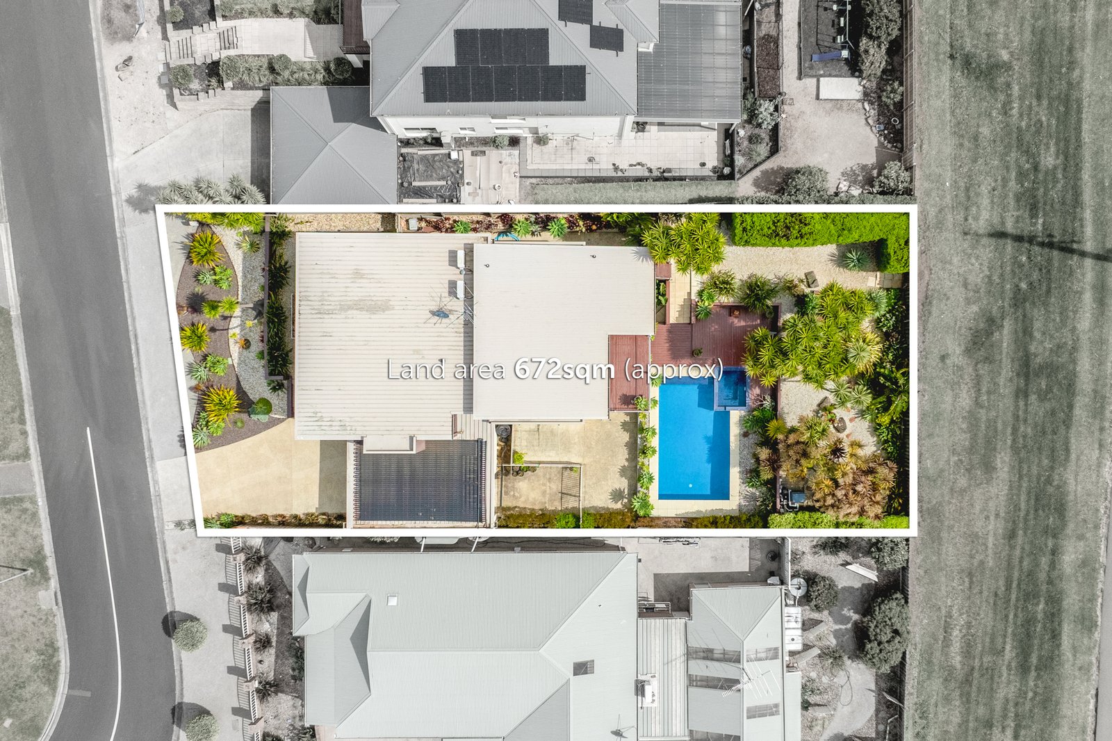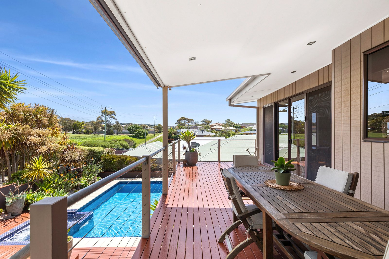 Outside, an undercover alfresco provides a private space for poolside entertaining, with surrounding gardens creating a tropical atmosphere. The solar heated in-ground pool and spa add resort-style luxury, with a sun deck for summertime lounging. The rear yard features established hedges and low maintenance gardens, with pedestrian access to Tim Hill Reserve and Wandana Tennis Club. The double garage includes direct internal entry, with driveway space for additional off-street parking.