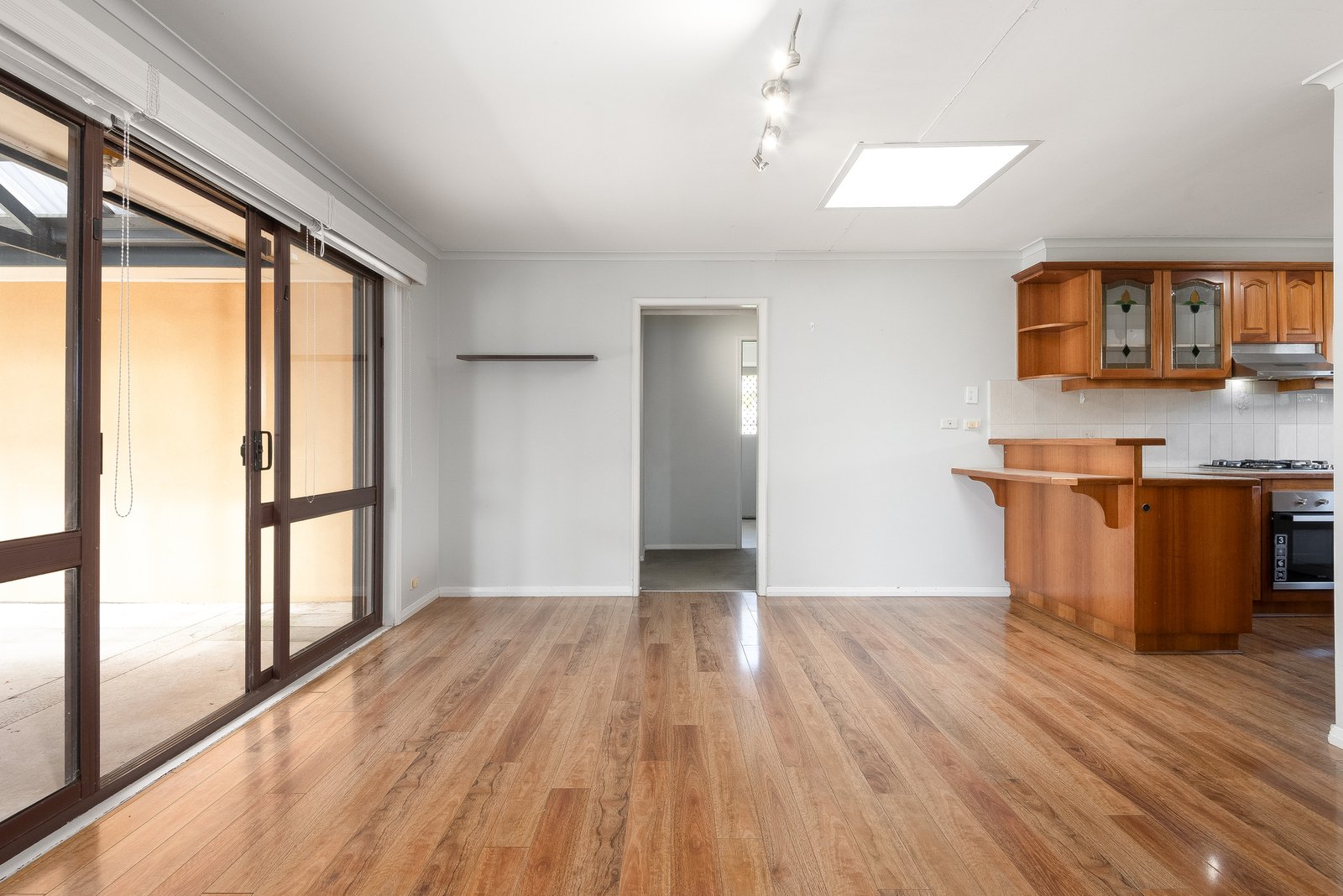 Neatly presented, the home is set in a family friendly neighbourhood. Inside, the entry leads into a spacious living area featuring a gas log fireplace for a warm and inviting ambience, complemented by split system heating and cooling plus a ceiling fan for year-round comfort. The adjoining dining area and kitchen features a skylight for additional natural light, both areas connecting with the north facing alfresco for easy indoor-outdoor entertaining. The well-equipped kitchen features quality timber cabinetry, stainless steel cooking appliances including 600mm oven and gas cooktop, dishwasher, breakfast bar, and generous storage provisions.
