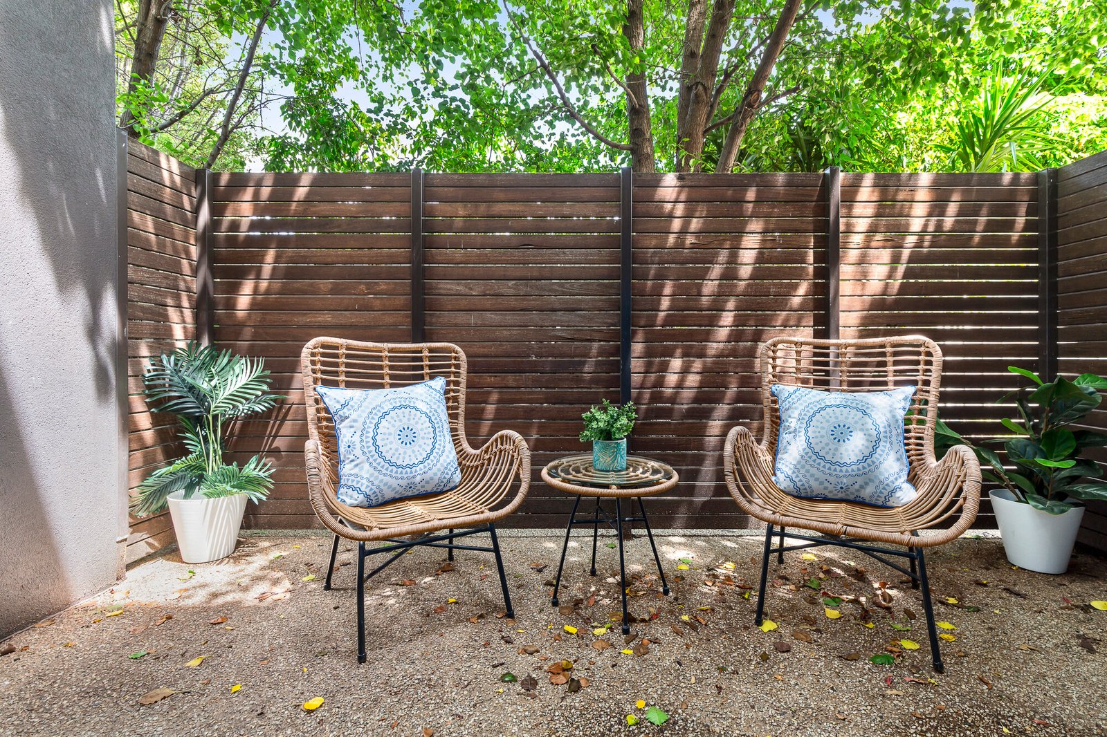 Bathed in natural light throughout, this open-plan, two-bedroom ground-floor apartment is peacefully positioned at the rear of a boutique block shared with just two other residences.