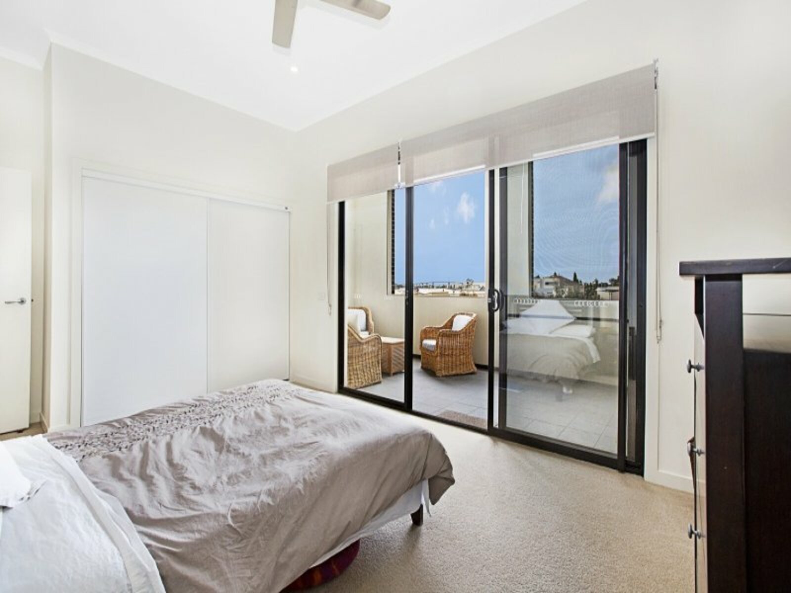 - Top-floor bedroom with large private balcony and park/West Gate Bridge views
