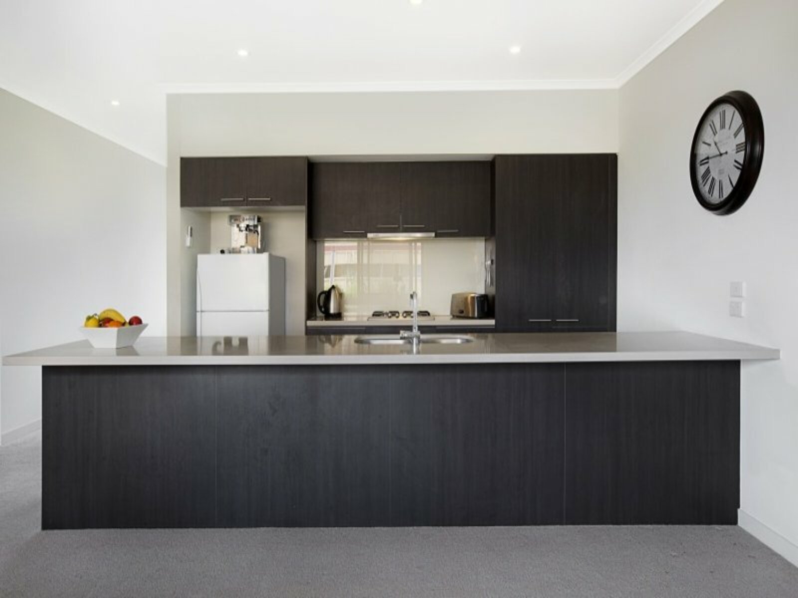 - Modern kitchen with stone benchtops, gas cooking & dishwasher