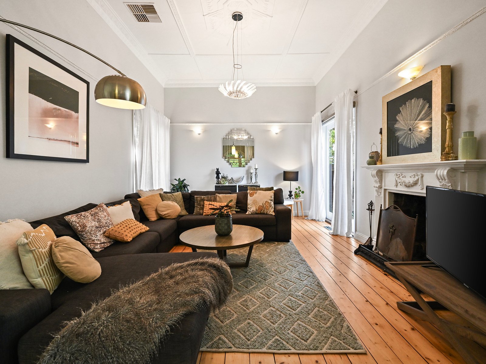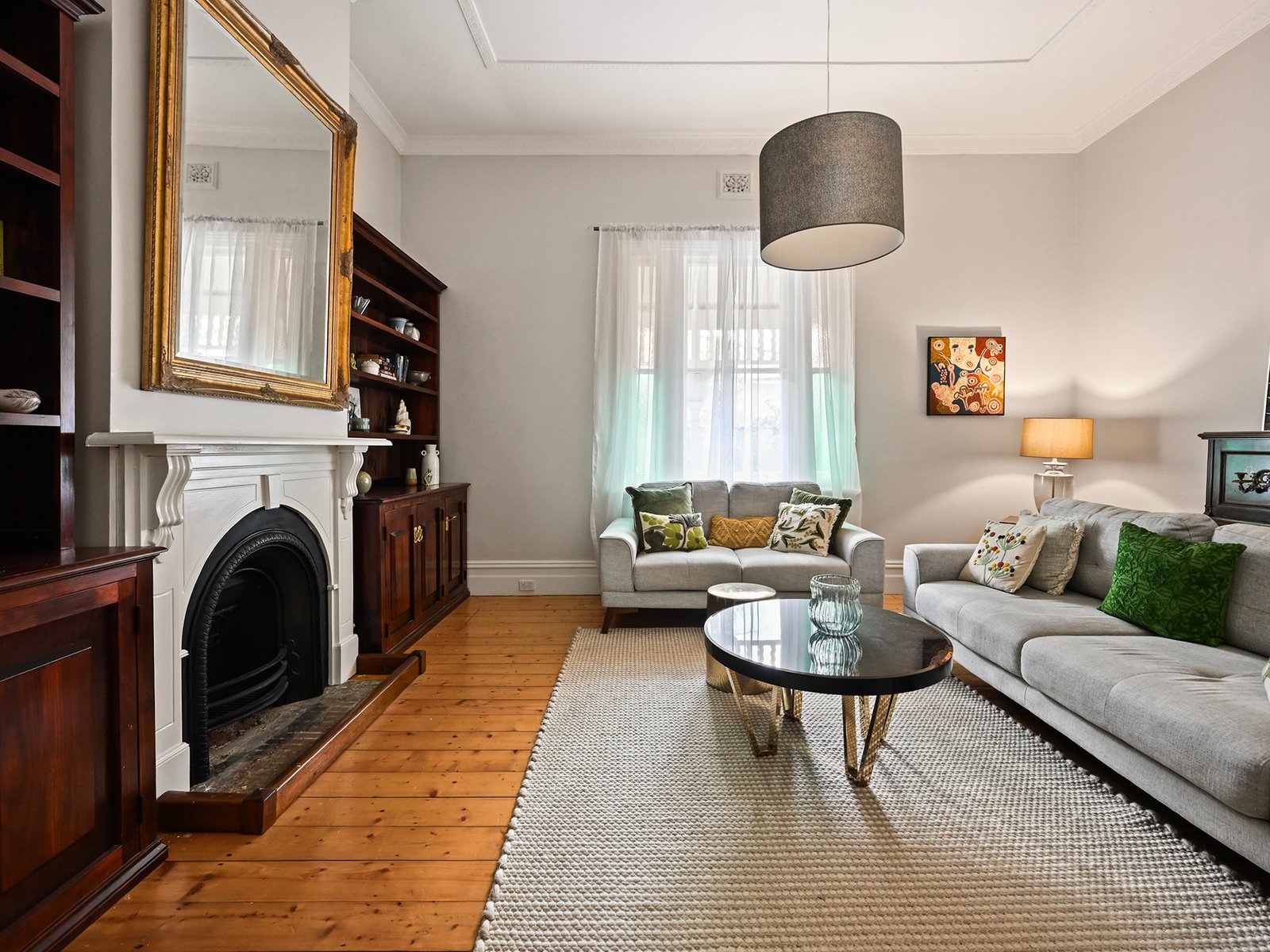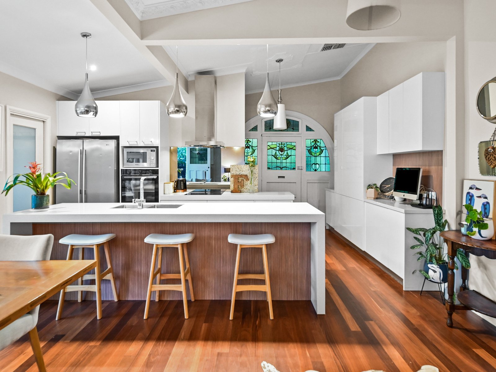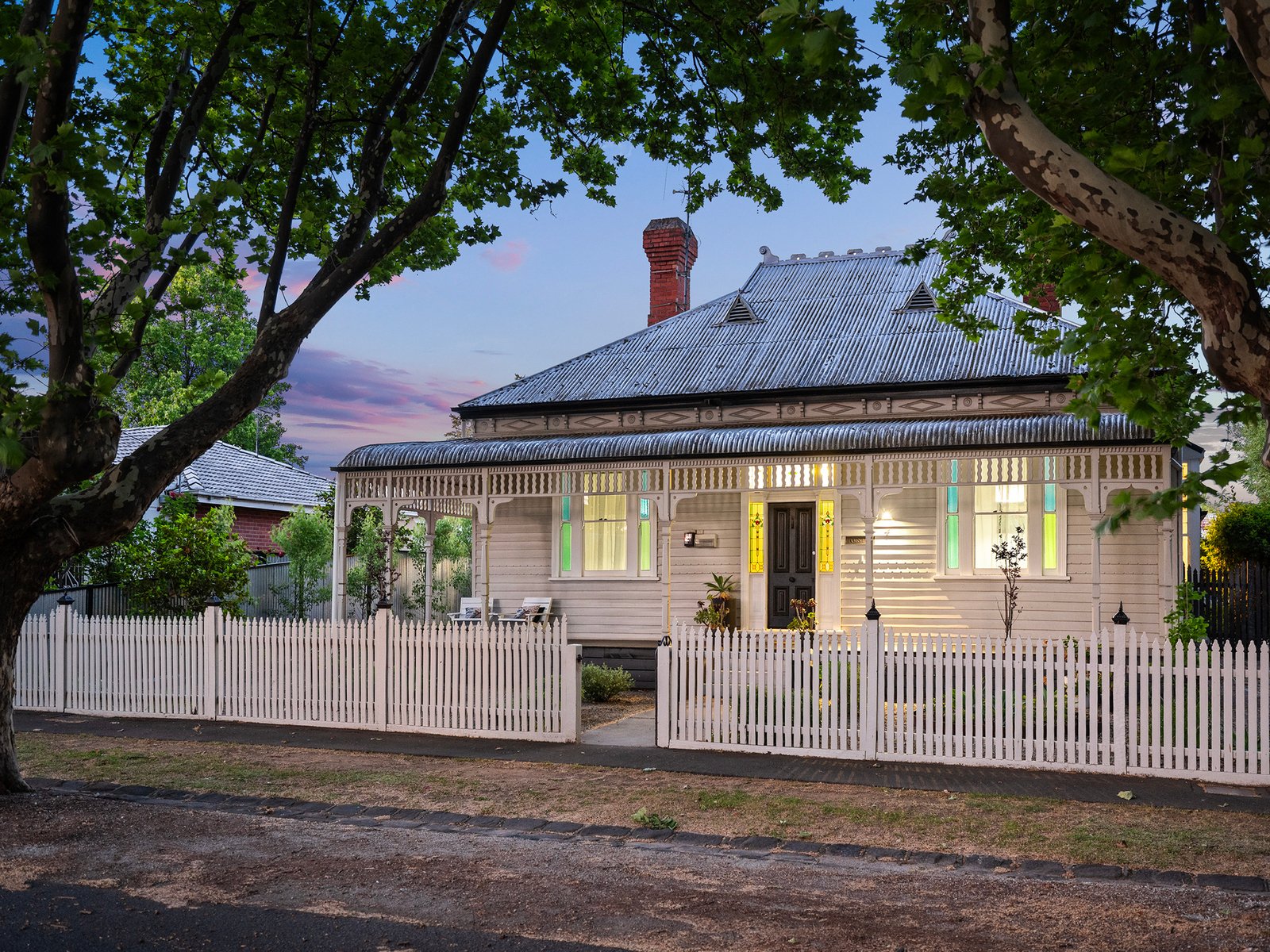 Behind the classic picket fence, the charming period residence combines timeless character and modern comfort in perfect harmony. From the classic period characteristics of a hipped roof with twin red-brick chimneys, and a bull-nosed return verandah trimmed with timber fretwork, step inside to a central arched hallway highlighting soaring decorative ceilings and polished timber floors.