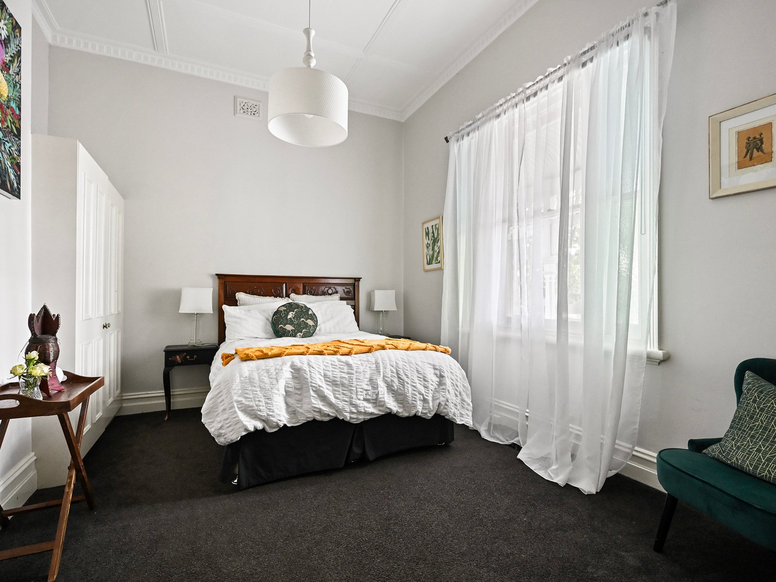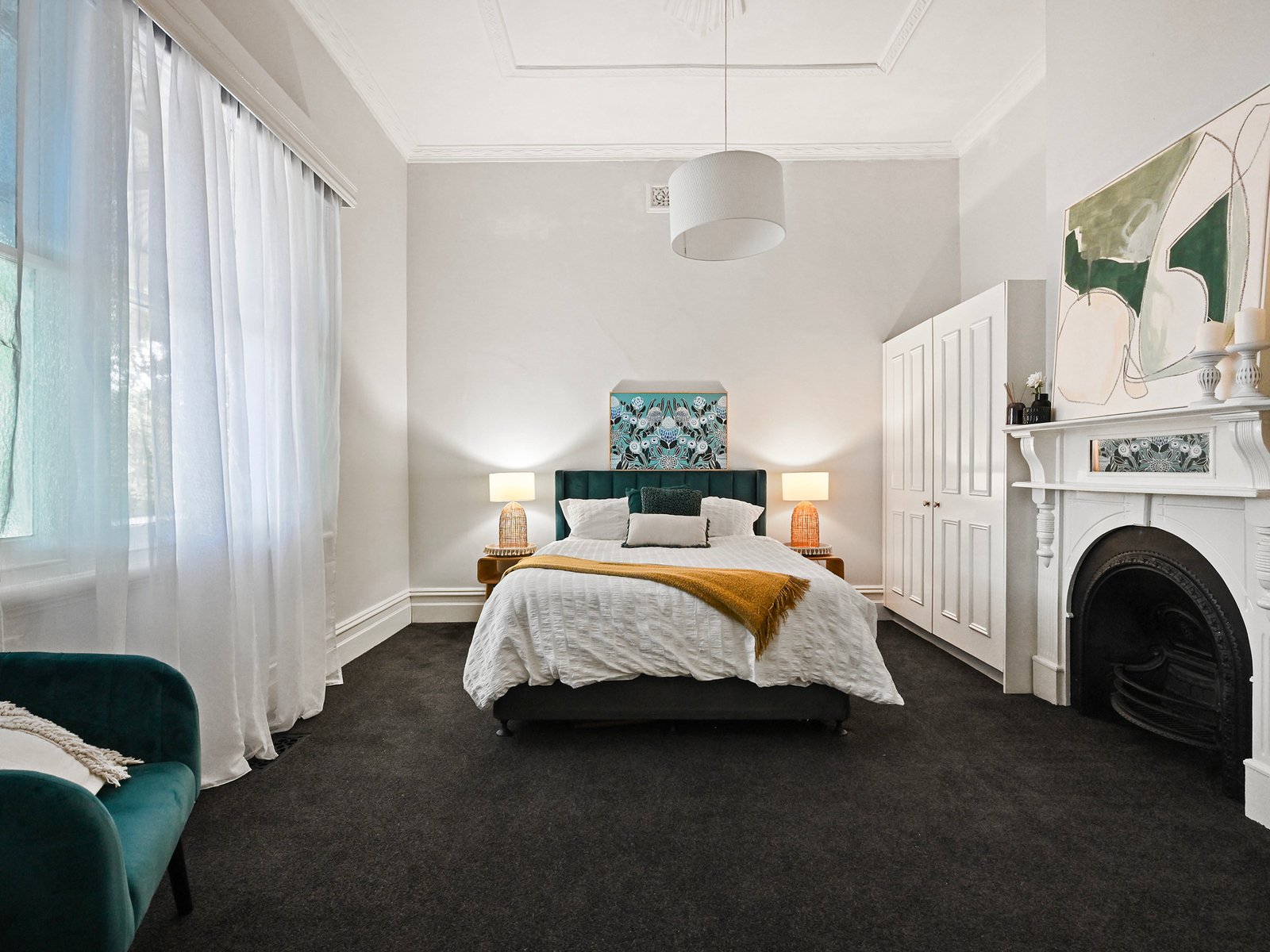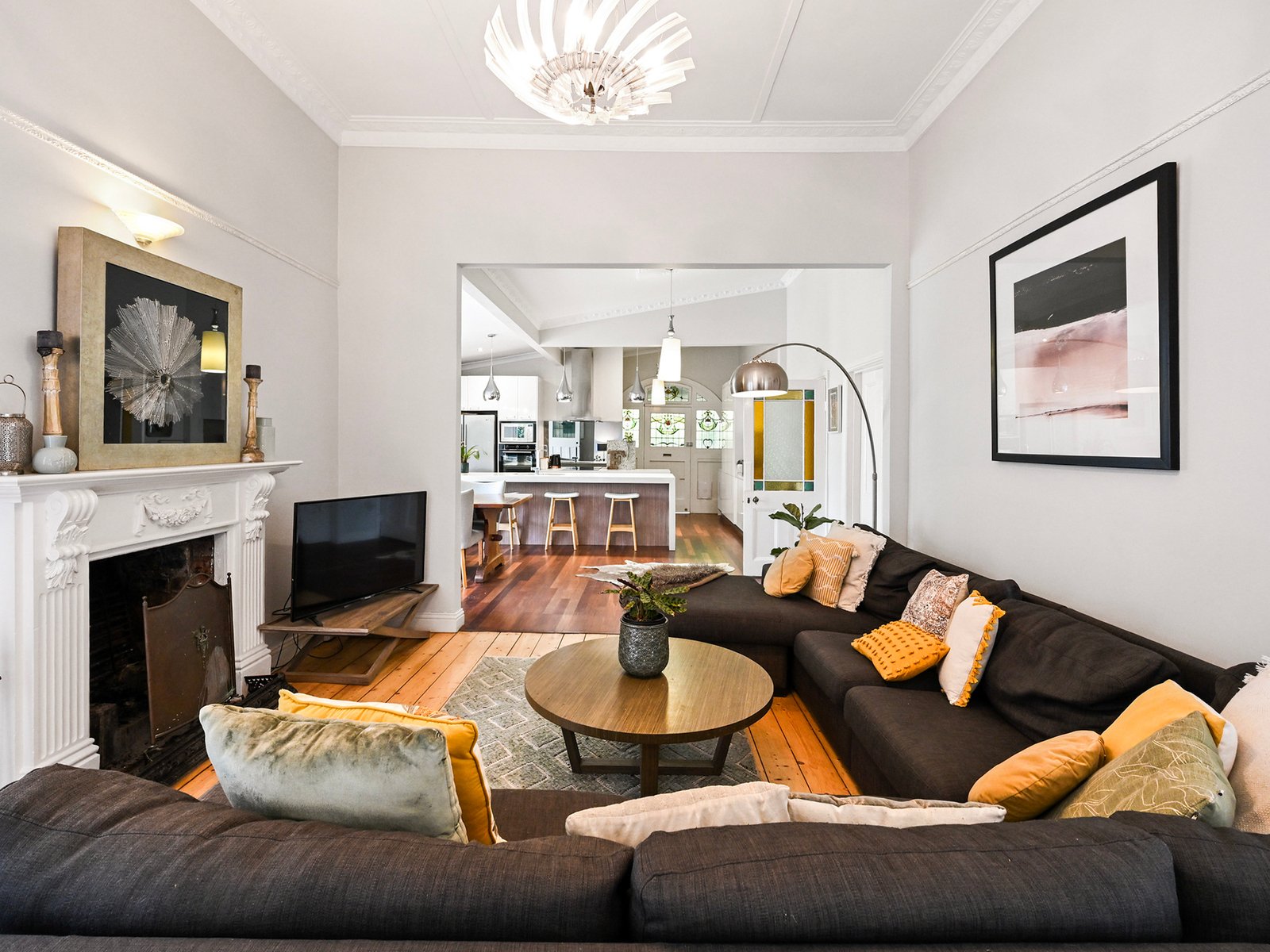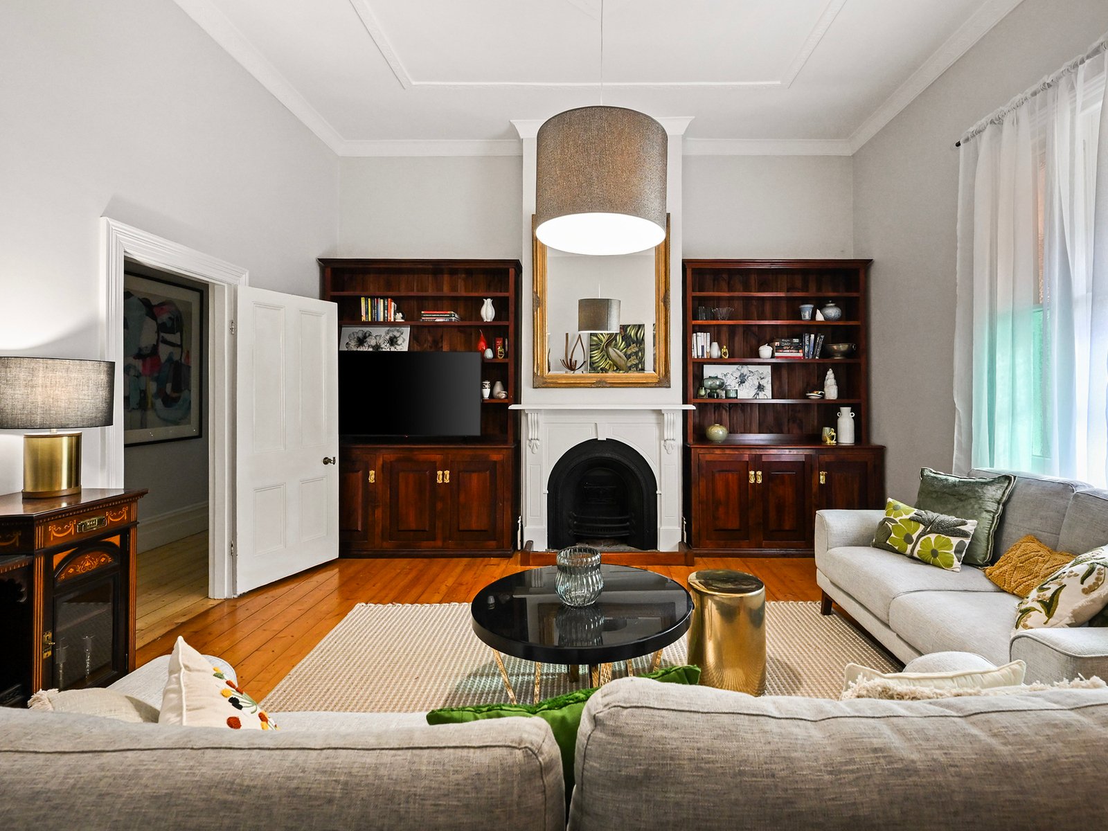 Behind the classic picket fence, the charming period residence combines timeless character and modern comfort in perfect harmony. From the classic period characteristics of a hipped roof with twin red-brick chimneys, and a bull-nosed return verandah trimmed with timber fretwork, step inside to a central arched hallway highlighting soaring decorative ceilings and polished timber floors.