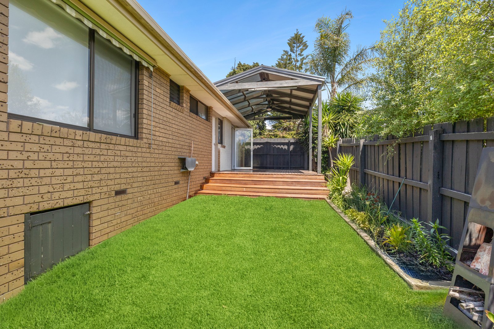 Illuminated by a broad picture window, the home boasts a living room and kitchen that flow onto the generous decked patio (with an outdoor fan and heater) offering a terrific extension of the living zone. The kitchen is furnished with resilient glass and stone surfaces complimenting the gas cooking, dishwasher and terrific storage.