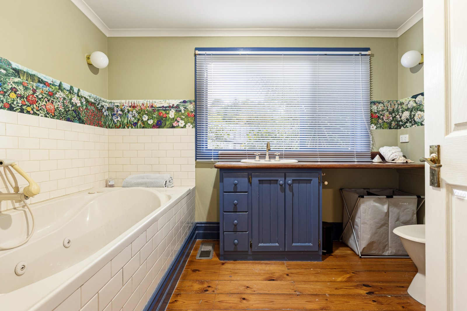 Accommodation includes three bedrooms, highlighted by a king-sized master suite with a picturesque box bay window, built-in robes, and French doors leading out to the deck. The third bedroom opens directly to a private courtyard, enhancing its appeal as a peaceful retreat. The main bathroom features a spa bath, separate shower, and toilet, while the rear laundry includes a second toilet and presents an easy opportunity to create a second bathroom if desired.