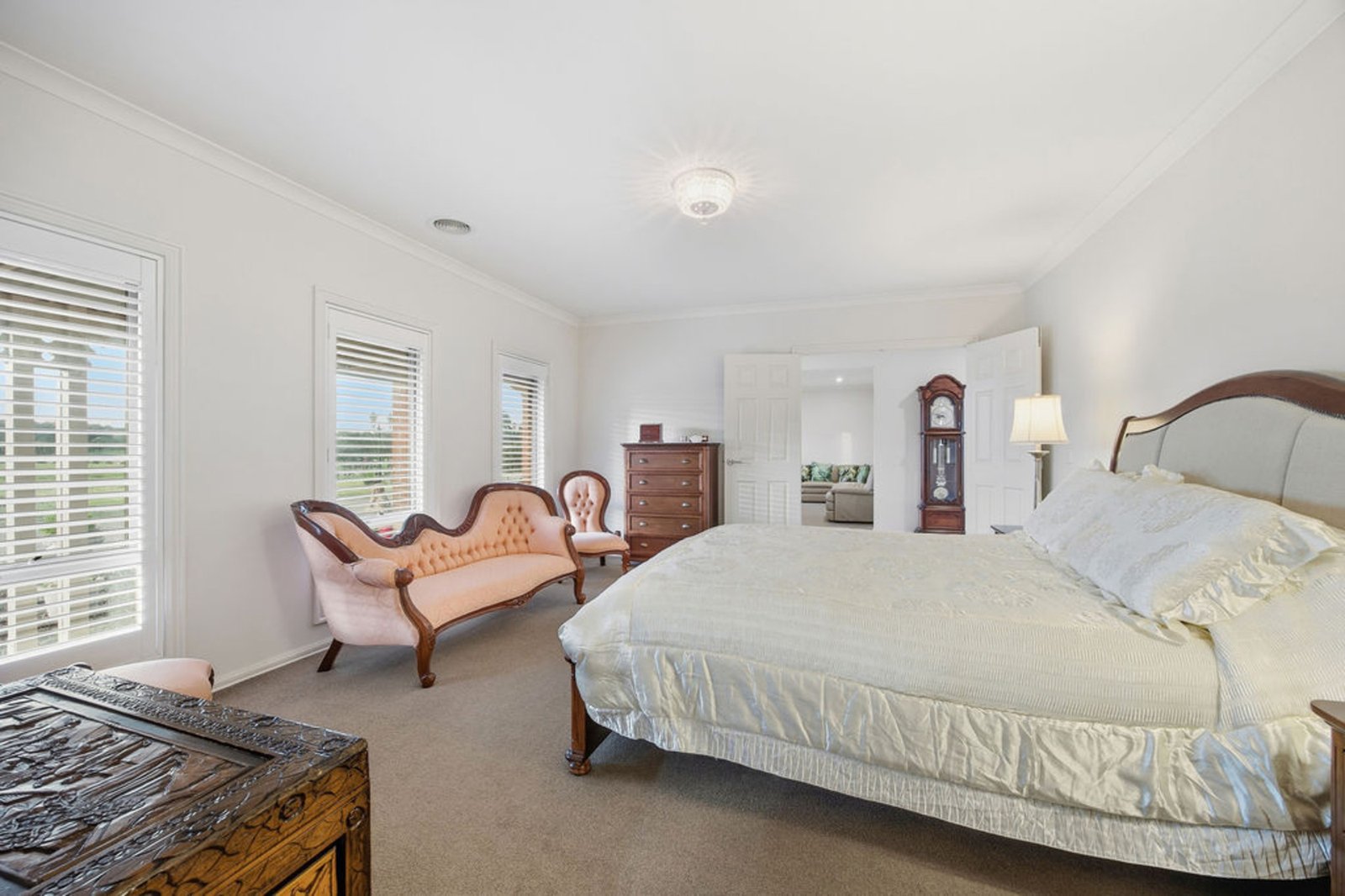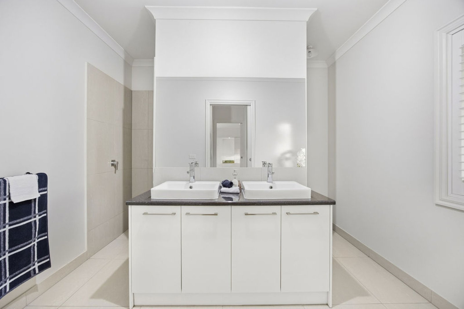 The king-sized master suite features a large walk-in robe and a spacious ensuite with double basins. The fourth bedroom is also fitted with its own walk-in robe, while the remaining bedrooms are well proportioned and are accompanied by built in robes and a central family bathroom. An additional powder room sits conveniently off the main living zone.
