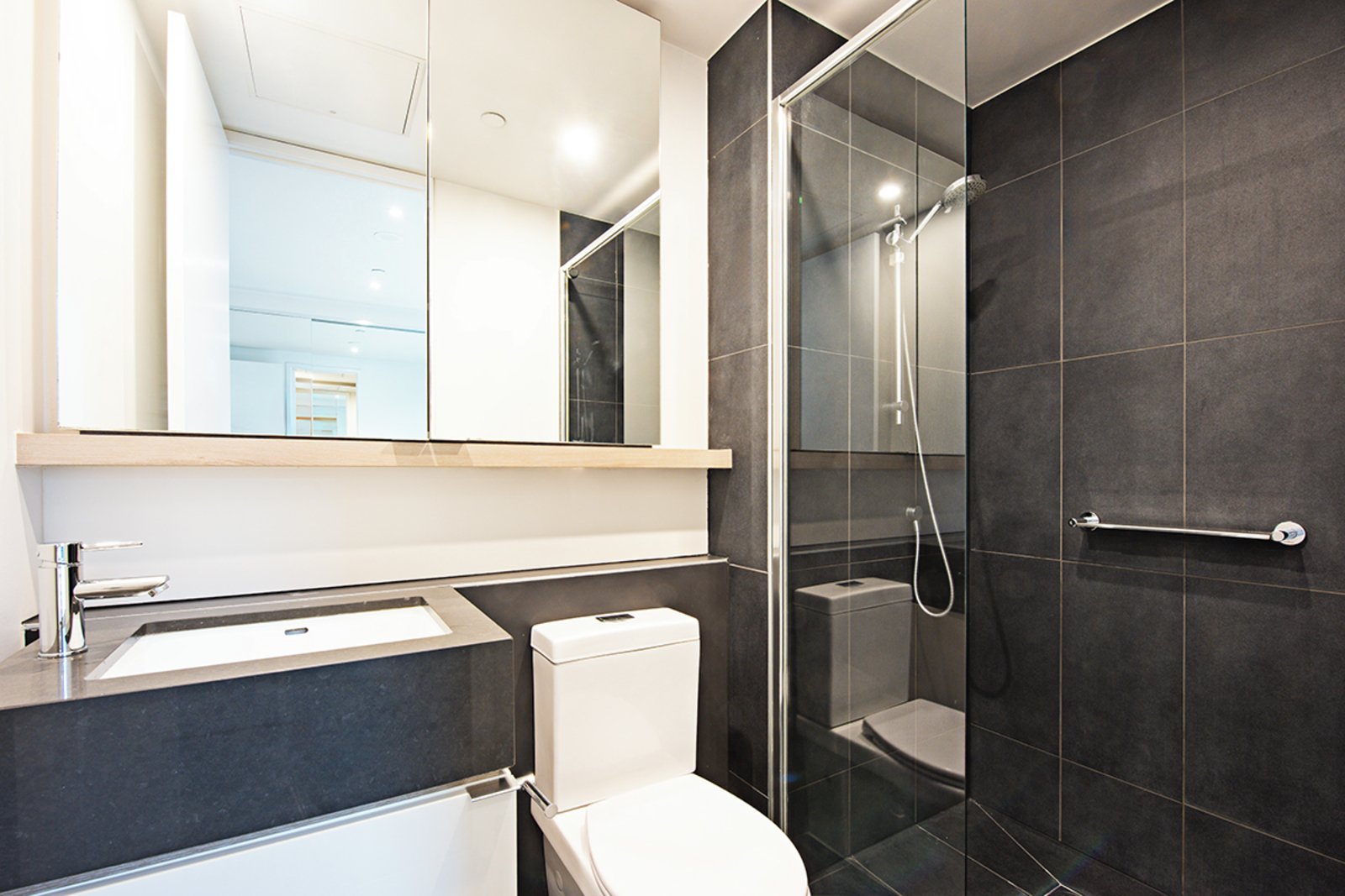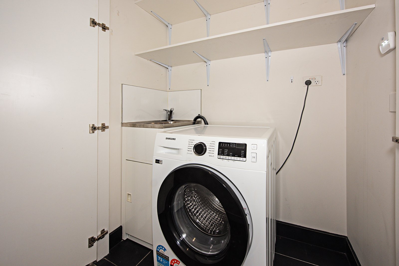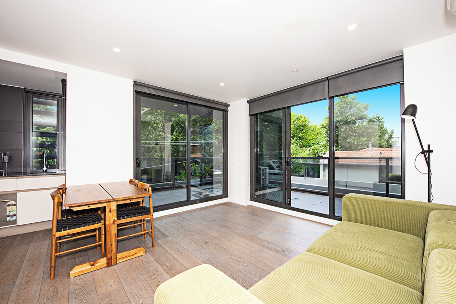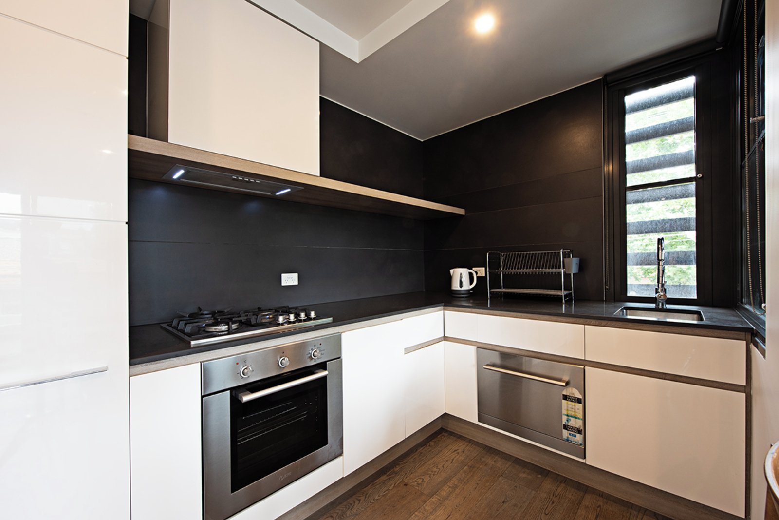 Inside, you’ll find a light-filled open-plan layout with sleek finishes, timber flooring and a generous balcony—perfect for your morning coffees or relaxed evening entertaining. The designer kitchen features stone benchtops, stainless-steel appliances and ample storage, making it both functional and elegant.