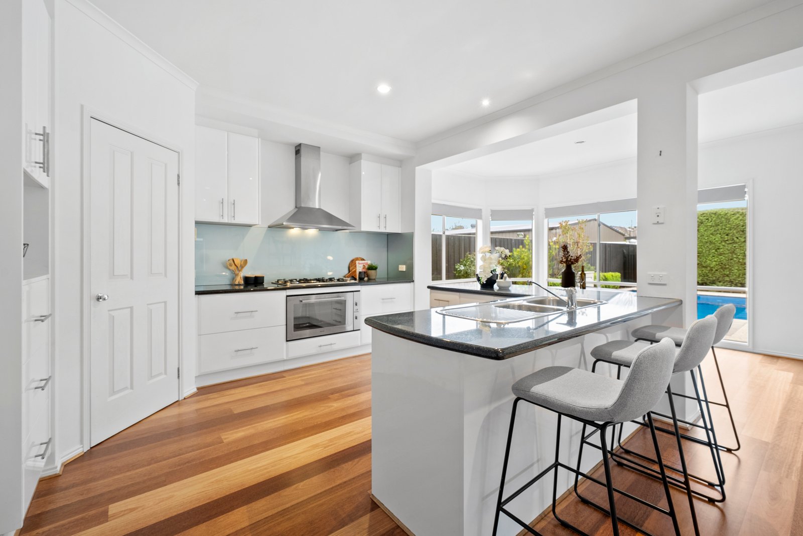 Ready to rise to every family occasion with an entertainers kitchen, complete with stainless steel appliances, there are more ways to feed the family with a spot for the BBQ complete with rangehood...and more ways to enjoy life with lawns for kids to play, the invisibly glass-fenced solar-heated pool to splash around and a designer cubby to hide away.