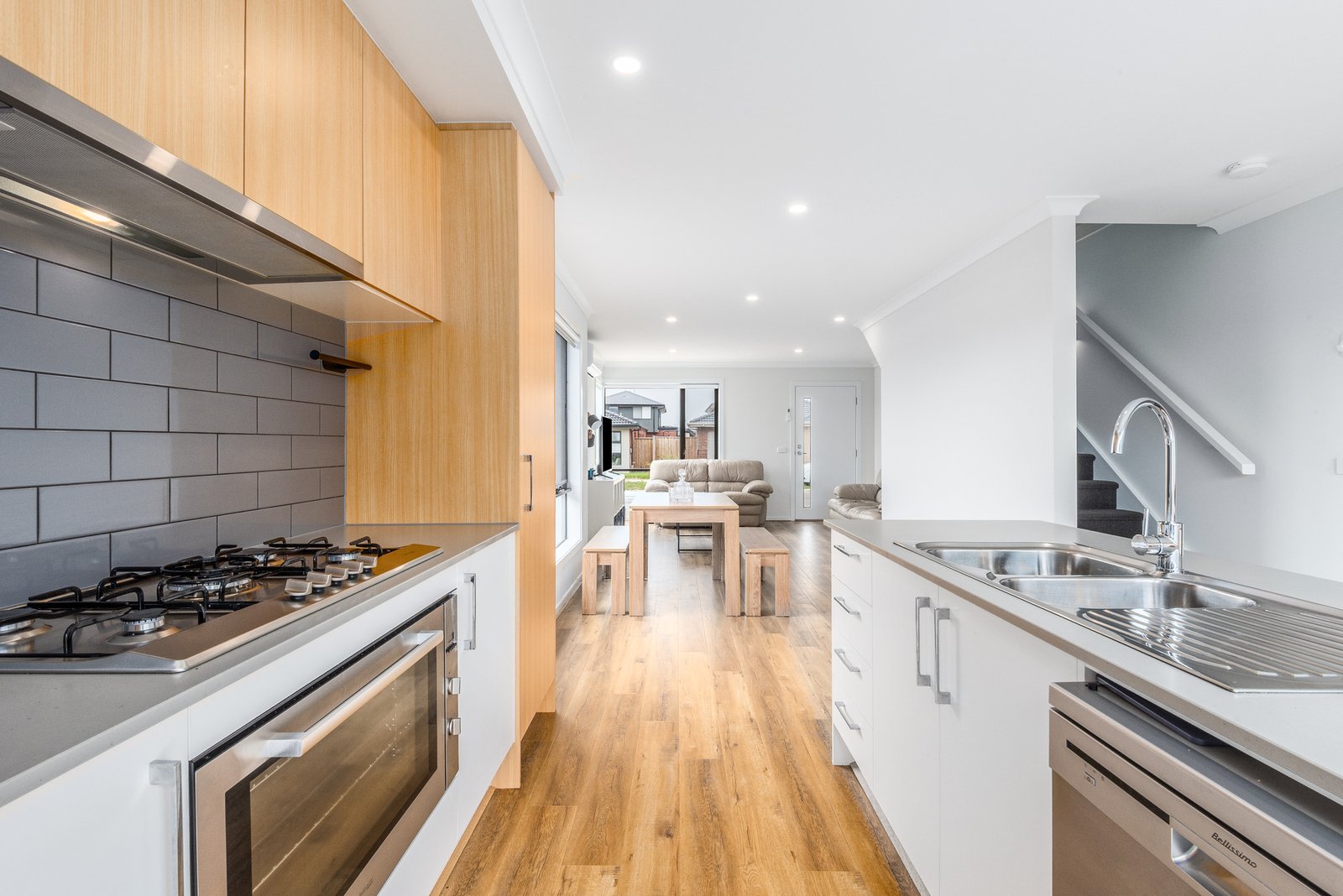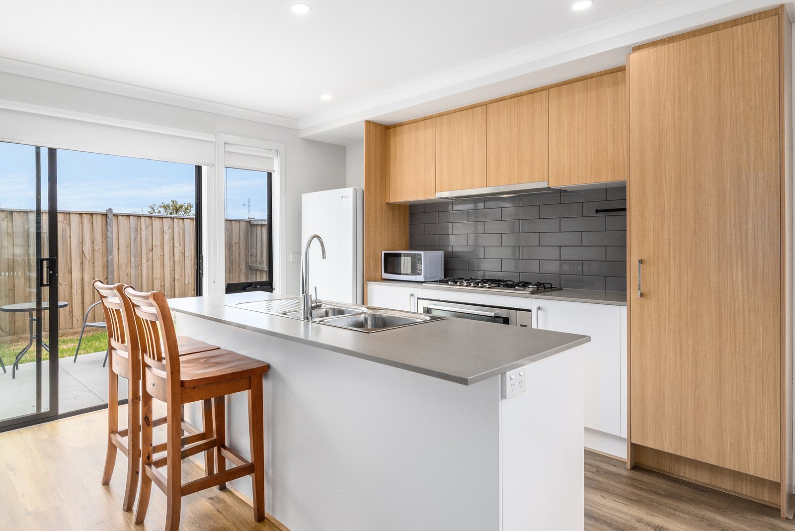 The appealing façade is defined by a striking blend of modern textures. Entry into an open plan living, dining and kitchen reveals light contemporary interiors and modern flooring, presenting a sophisticated theme within. The well-appointed kitchen features stone benchtops, a 900mm oven, gas cooktop, dishwasher, elegant subway tile splashback, and generous storage provisions. Positioned to overlook the dining space, and with direct access to the outdoor entertaining area, the layout caters for easy everyday living and effortless entertaining.