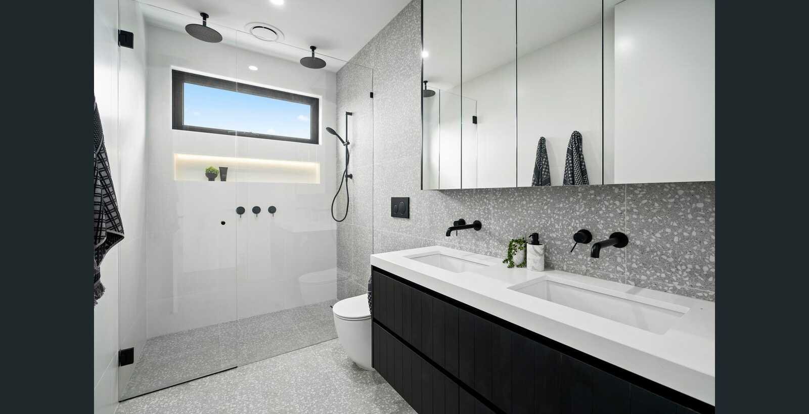 Upstairs, a black French oak staircase leads to a spacious retreat, a fitted study nook, and four robed bedrooms – including a luxurious master suite with a fully tiled ensuite featuring a double shower. A beautifully appointed family bathroom completes the upper level.