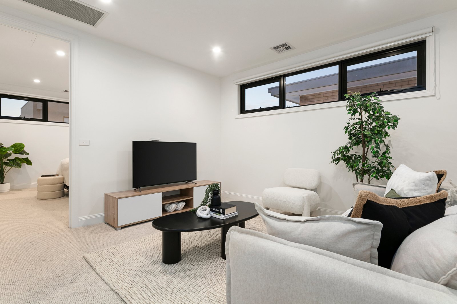 Ascend upstairs to discover your sanctuary: a master suite of proportion and privacy with walk-in robe and luxurious ensuite echoing the refined design of the main bathroom.. Adjacent, a dedicated retreat offers the perfect second living room, home office or quiet lounge adaptable to your lifestyle.