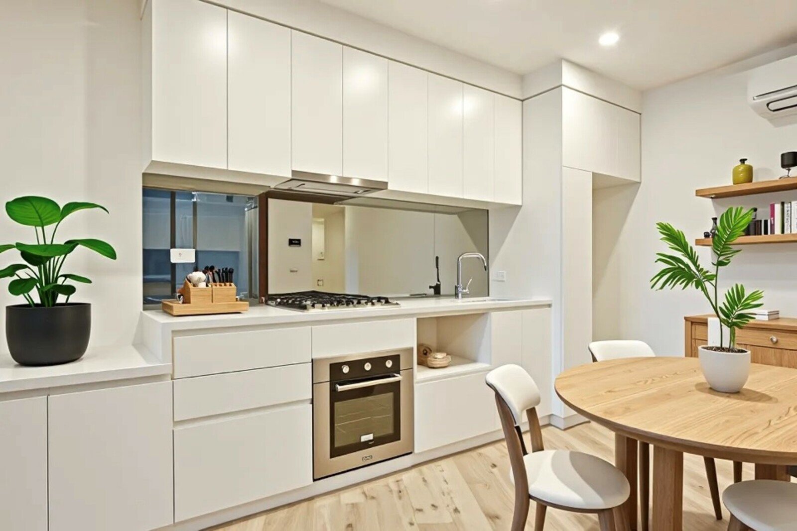 Modernised features include split system heating and cooling in the living space and bedroom, modern bathroom, Blanco kitchen appliances such as dishdrawer, oven and stovetop, polished timber flooring throughout the living area, brand new carpet to the bedroom with mirrored built in robes and generous views of St Kilda Rd.