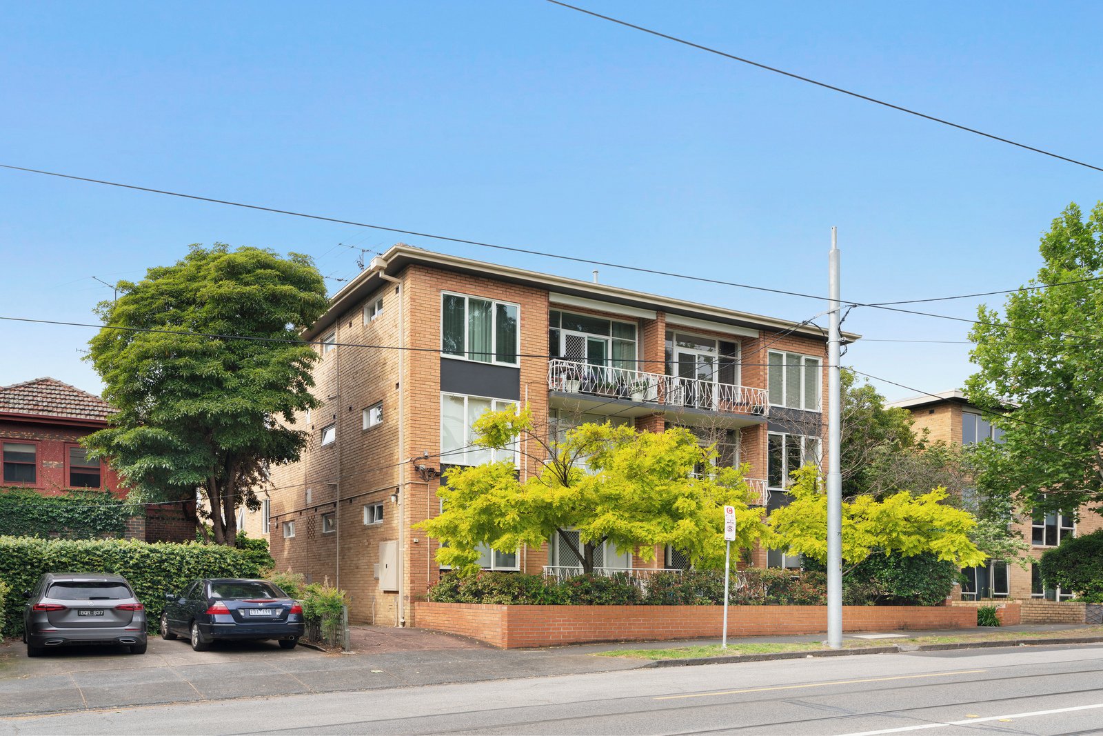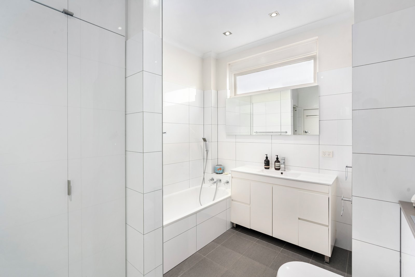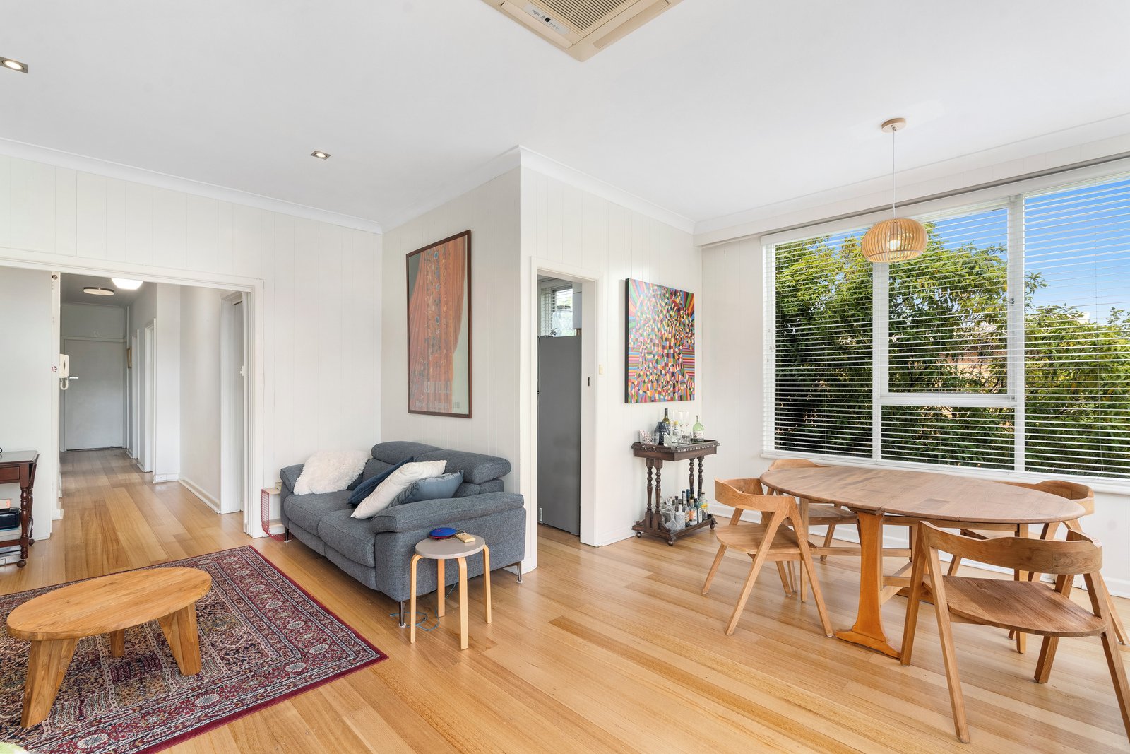One of just six in the building, it features a bright open living zone with hardwood floors and a balcony overlooking Malvern Road. The renovated kitchen impresses with stone benches, Bosch appliances and soft-close cabinetry.