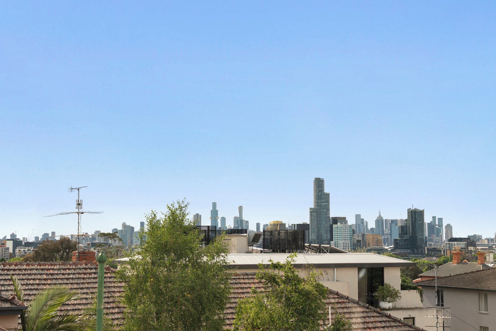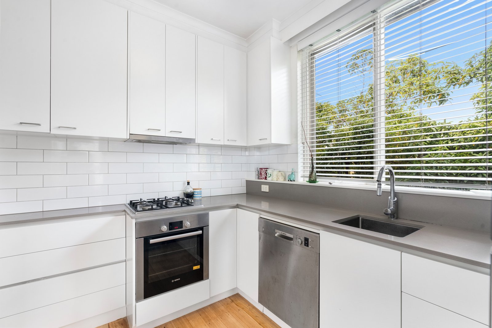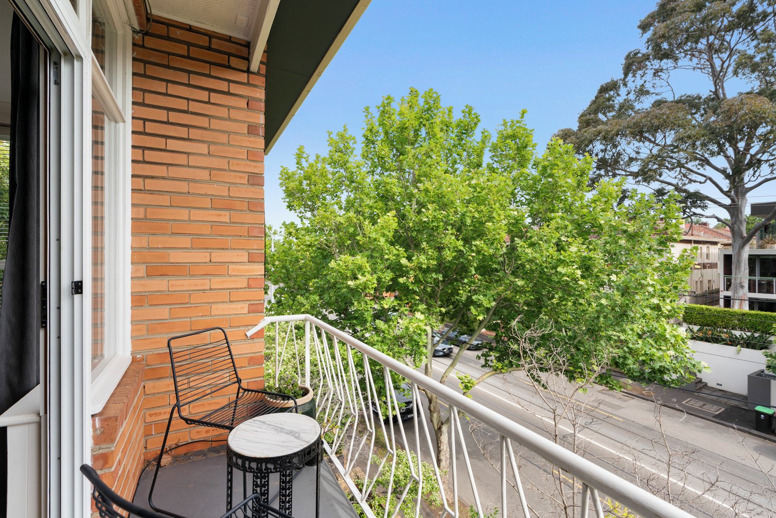 One of just six in the building, it features a bright open living zone with hardwood floors and a balcony overlooking Malvern Road. The renovated kitchen impresses with stone benches, Bosch appliances and soft-close cabinetry.