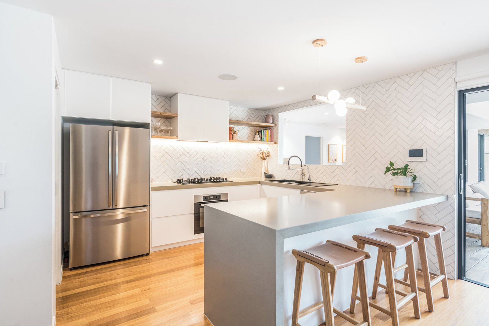 - Modern kitchen featuring 900mm gas cooktop, electric oven, dishwasher and walk-in pantry